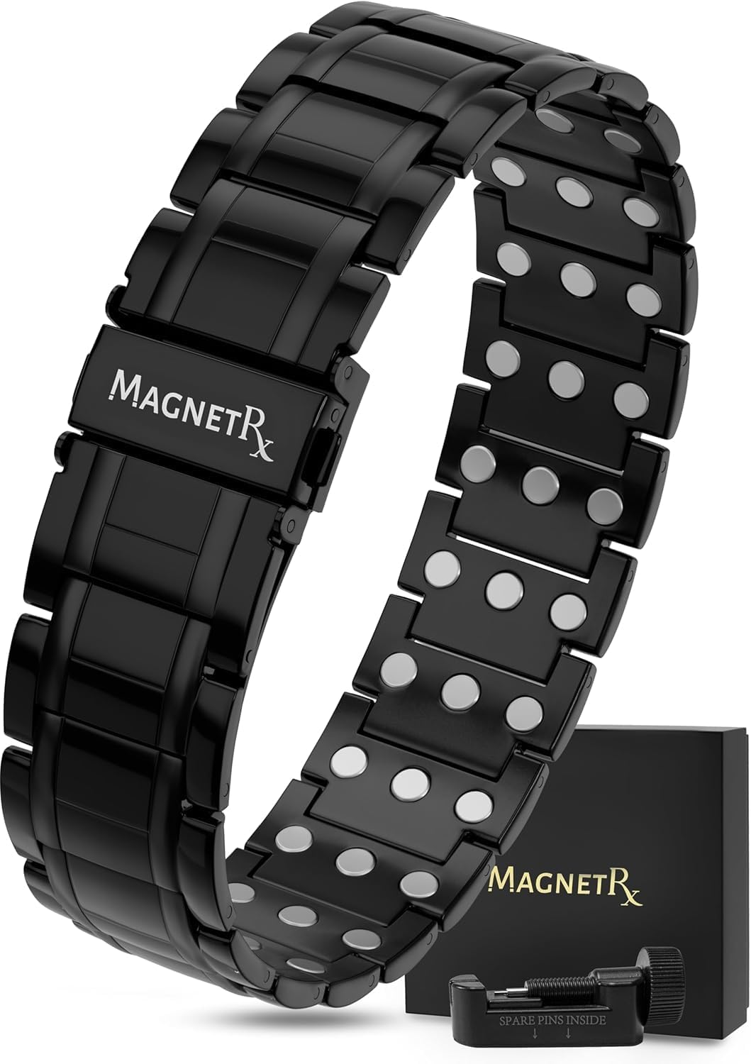 MagnetRX® 3X Strength Titanium Magnetic Bracelet – Magnetic Bracelets for Men – Premium Fold-Over Clasp & Adjustable Length with Sizing Tool (Black)
