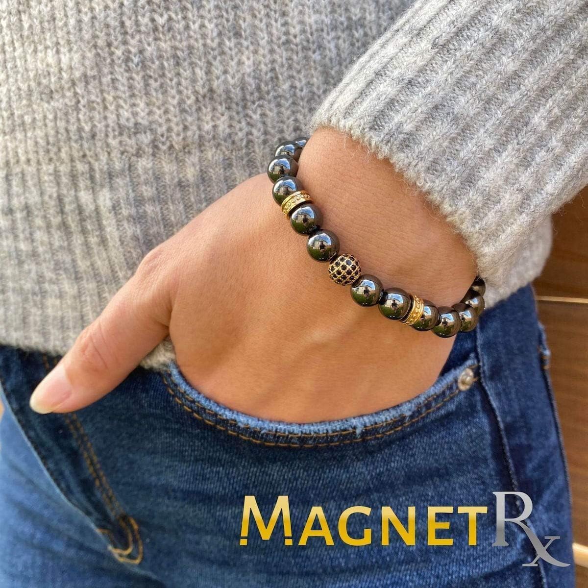 MagnetRX® Magnetic Hematite Bracelet – MAX Strength Magnetic Stones – Beaded Magnetic Bracelets for Men and Women (Gold Zeus 8mm Bead)