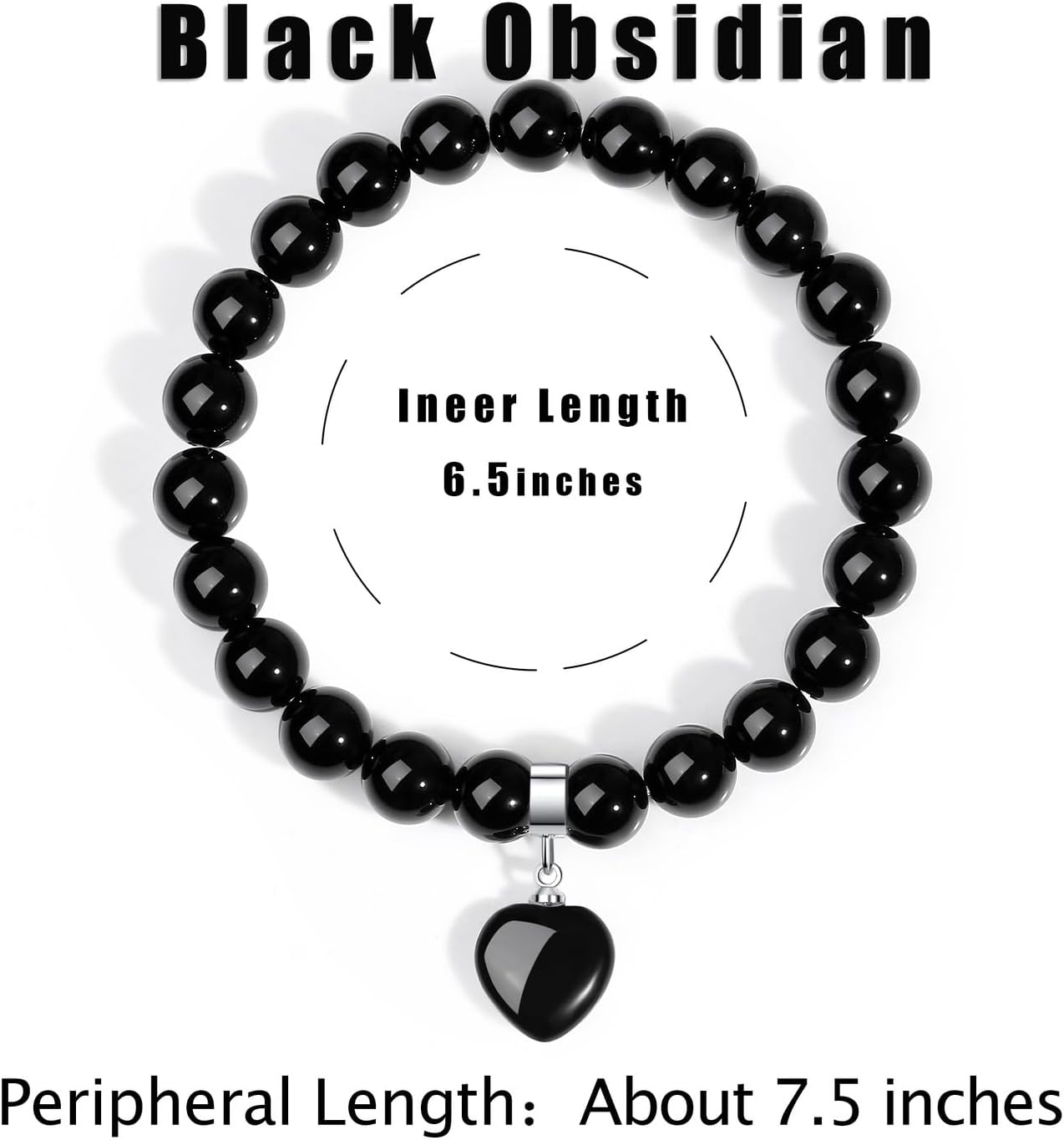 MAIBAOTA Healing Crystal Bracelet for Women, 8 mm Beaded Bracelet, Gemstone Love Heart Charm Bracelet, Stone Jewelry Gifts for Christmas Anniversary Valentine’s Day