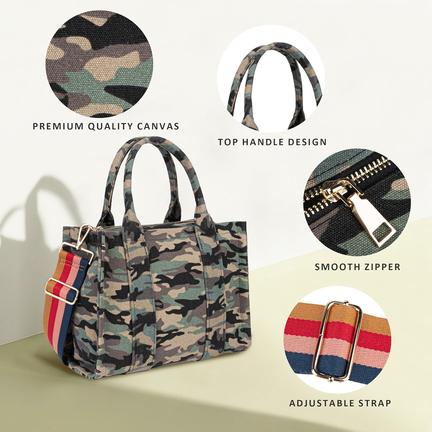 MEEJUNE Canvas Tote Bag for Women, Shoulder, Crossbody, or Handheld Bag for School, Office, Travel (11.4X9.05X5.5in)