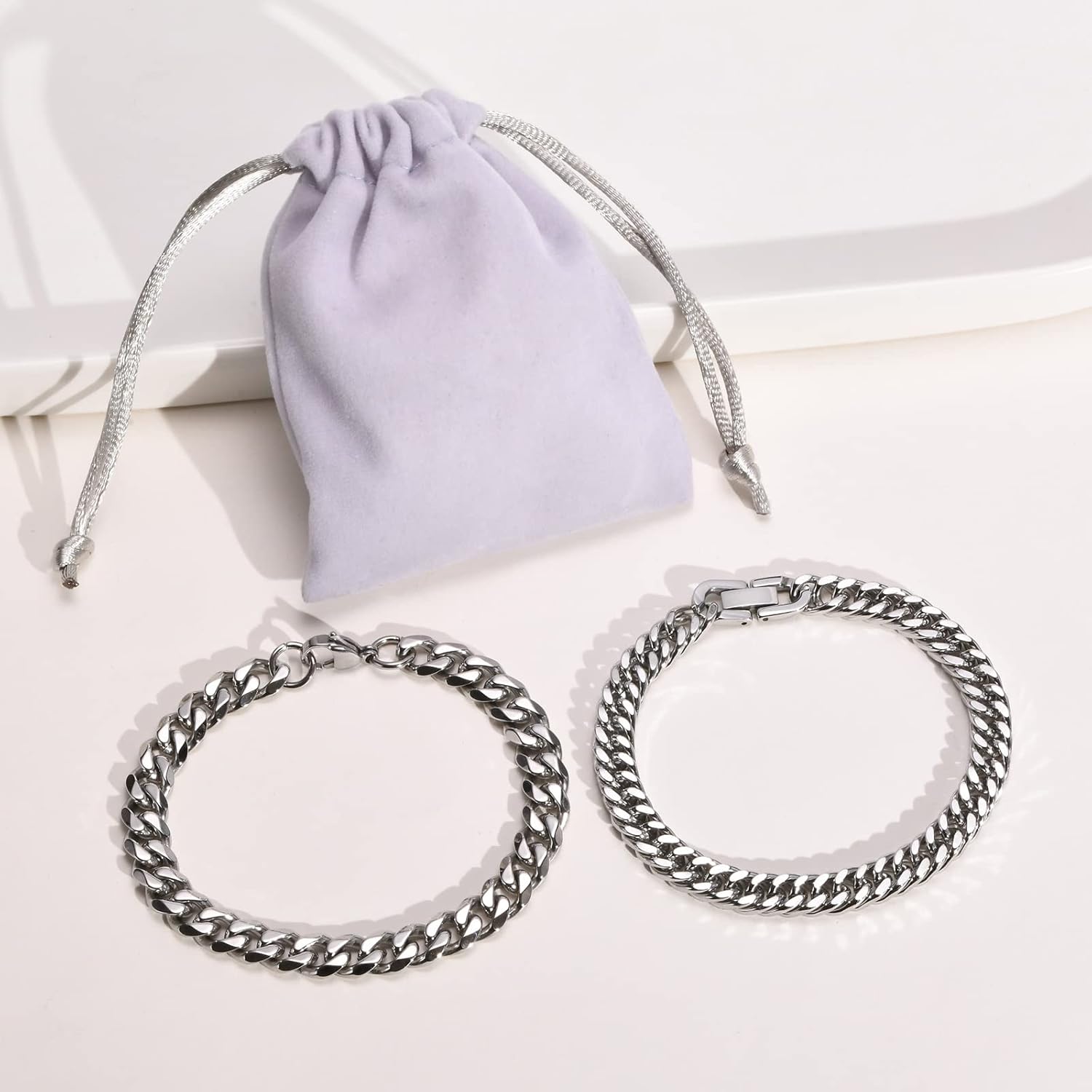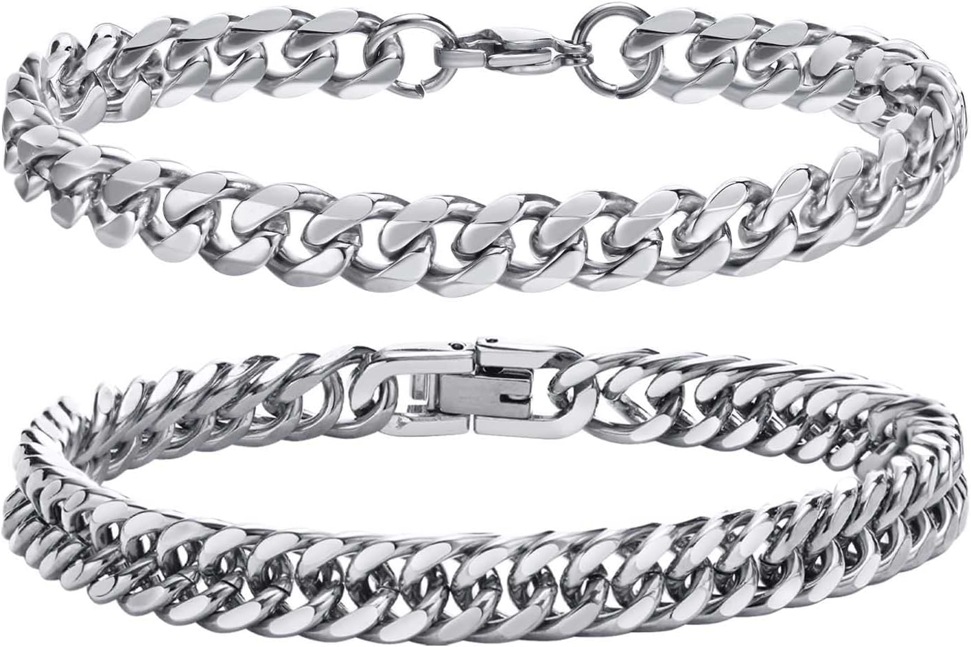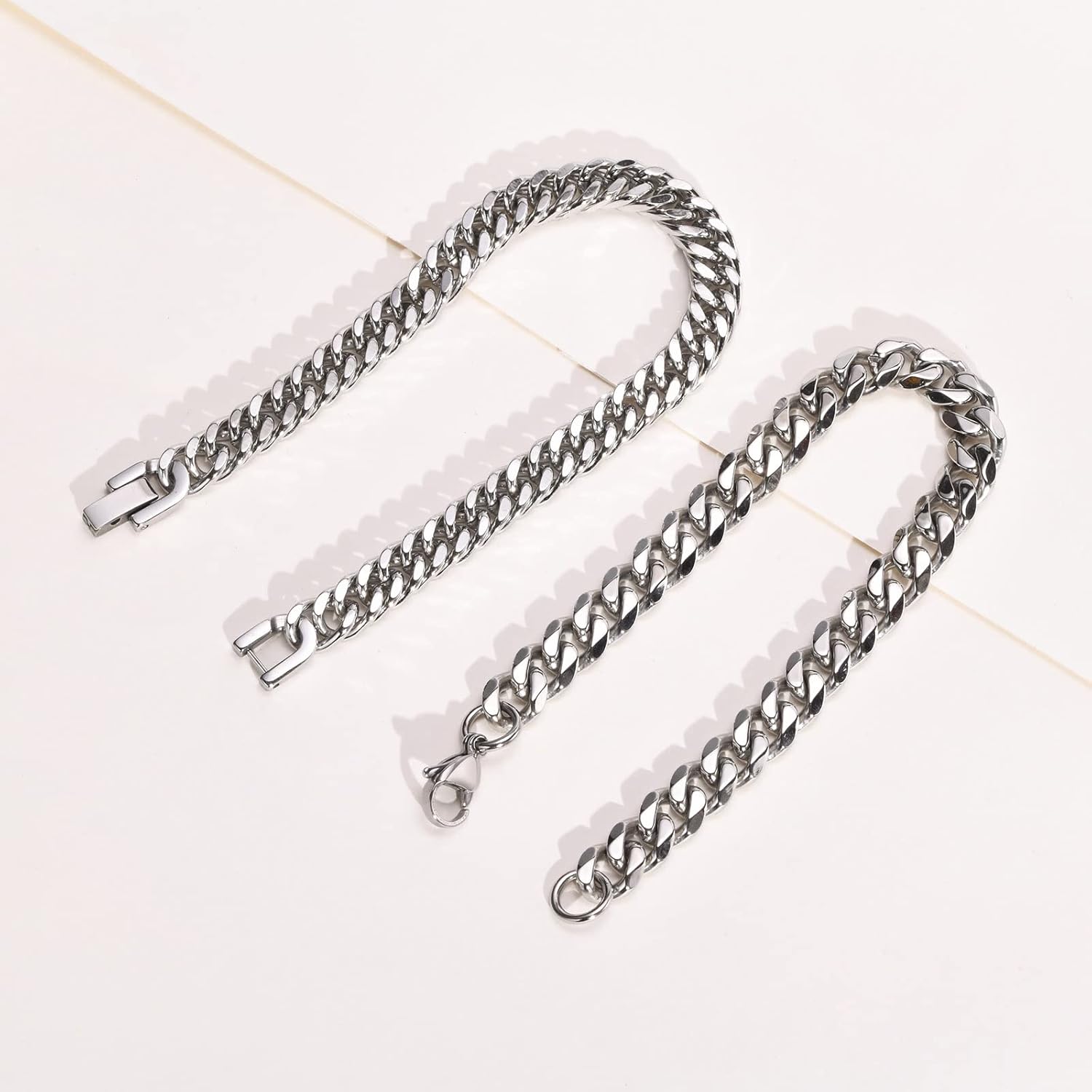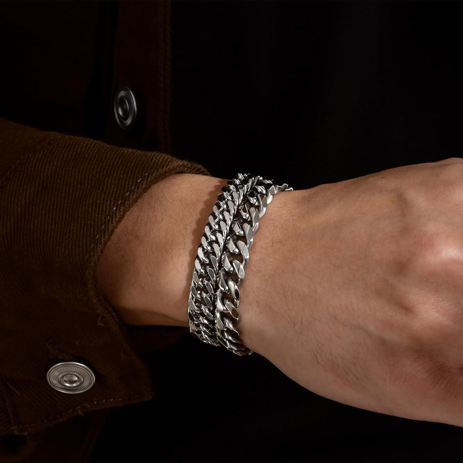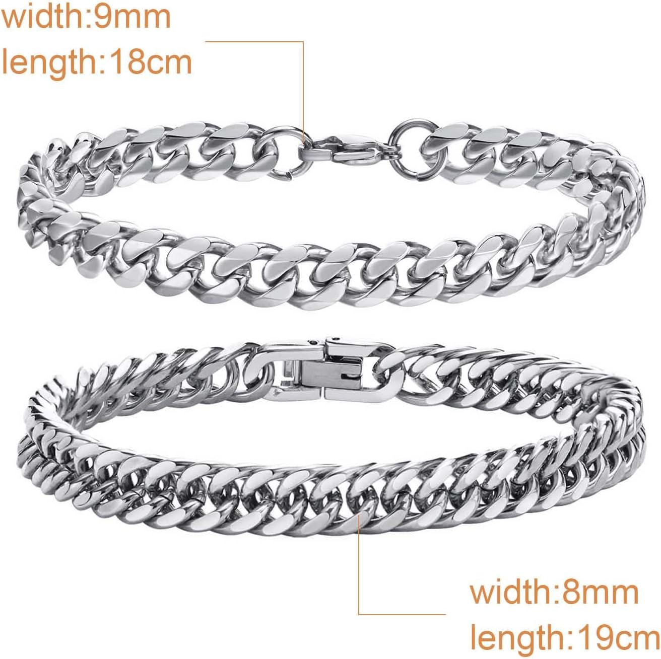 Mens Bracelets Curb Chunky Chain : Cuban Bracelet 2 Pack 9mm Silver Hand Chains Stainless Steel Hip Pop Rapper Unisex Jewelry Gift