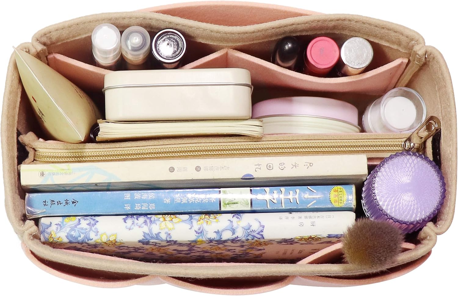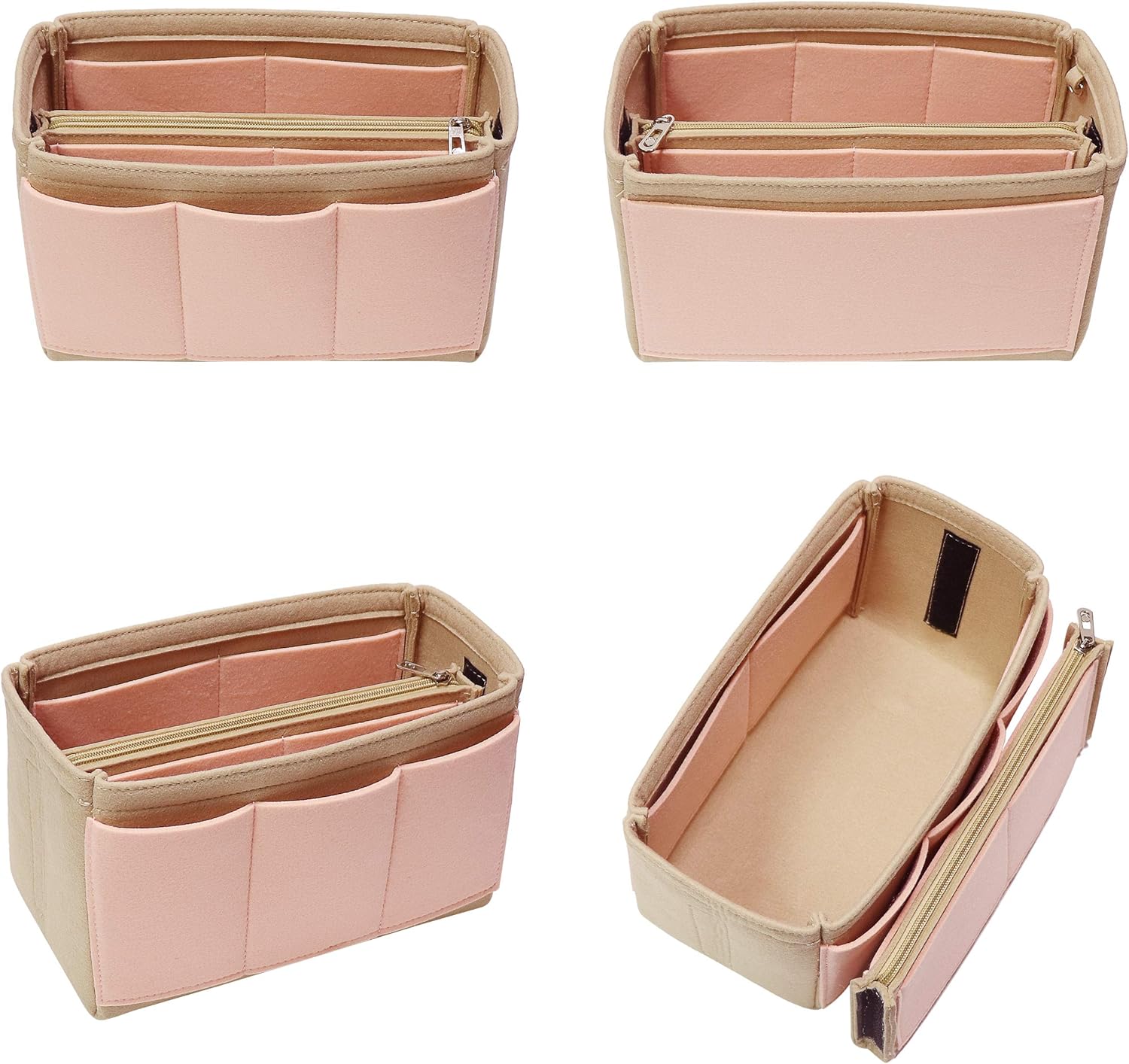 MISIXILE Felt Purse Organizer Insert Bag Organizer Handbag Tote Bag in Bag with Zipper for Speedy Neverfull-Pink,S