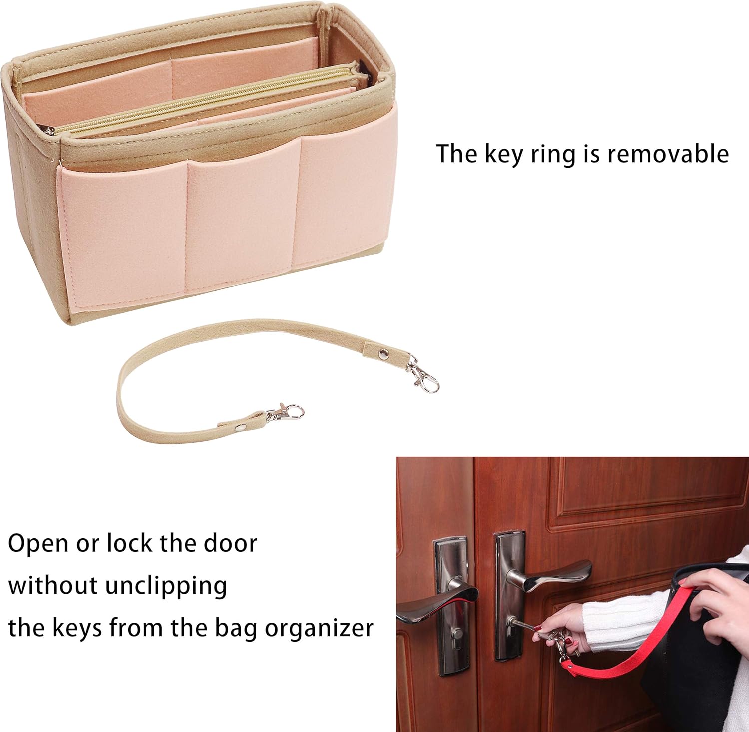 SINGLE DETACHABLE STORAGE — There are 13 pockets for this bag organizer.Which can orderly organize your handbag/purse, simplify your storage. Single zipper pocket in the middle which can store valuables,easy Removable.Putting Large Items After Removing When You Needed.