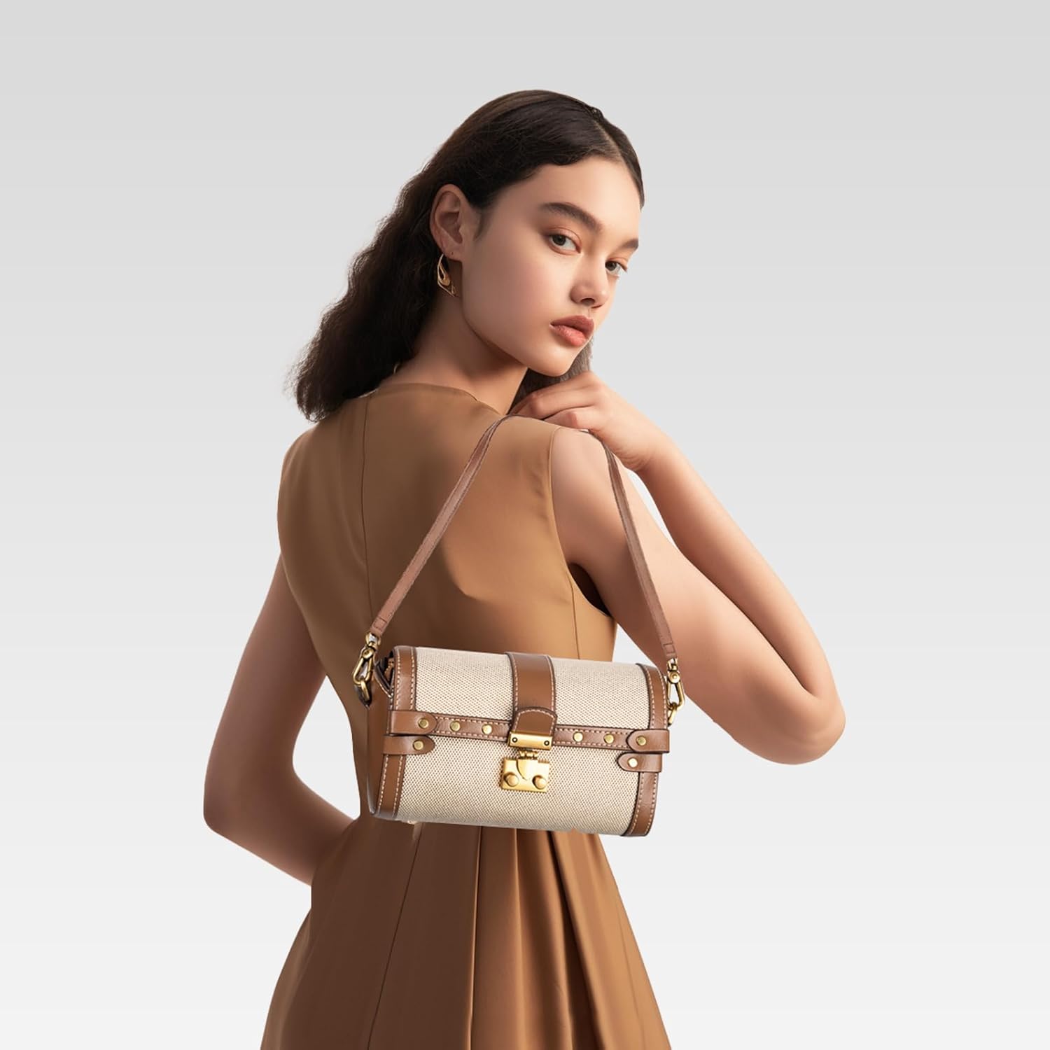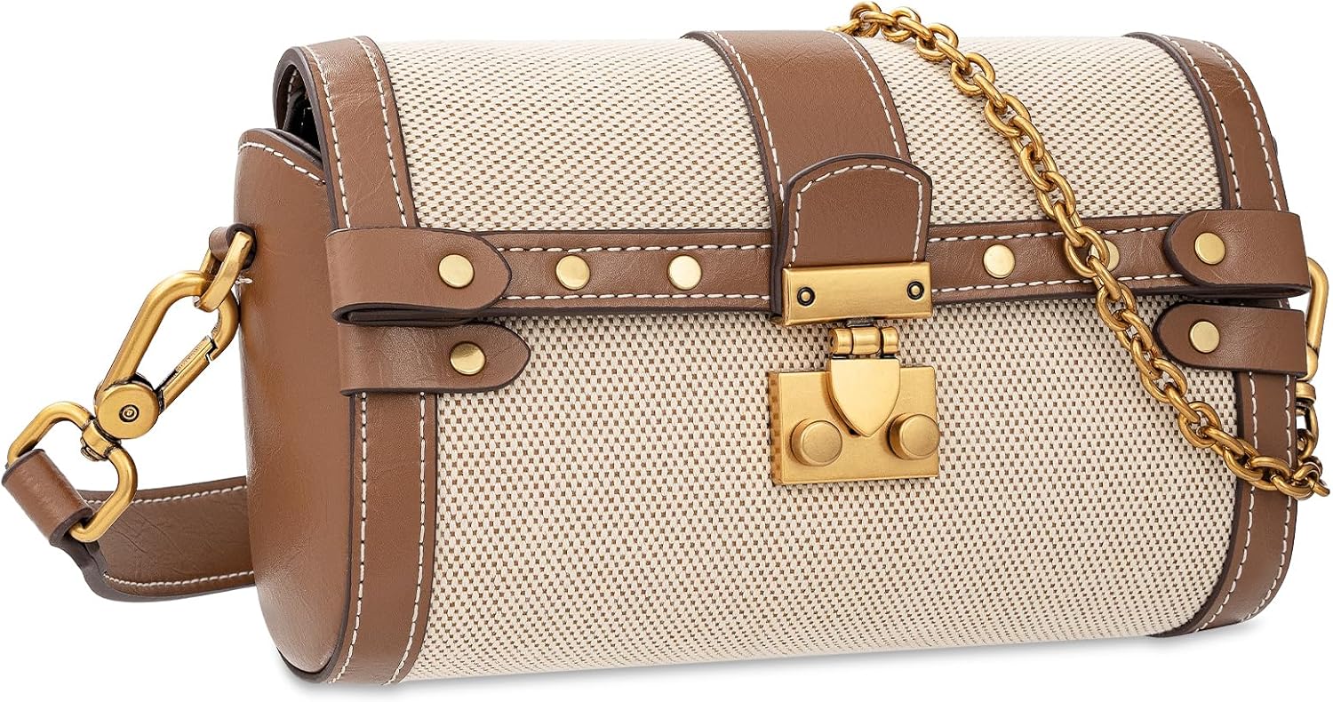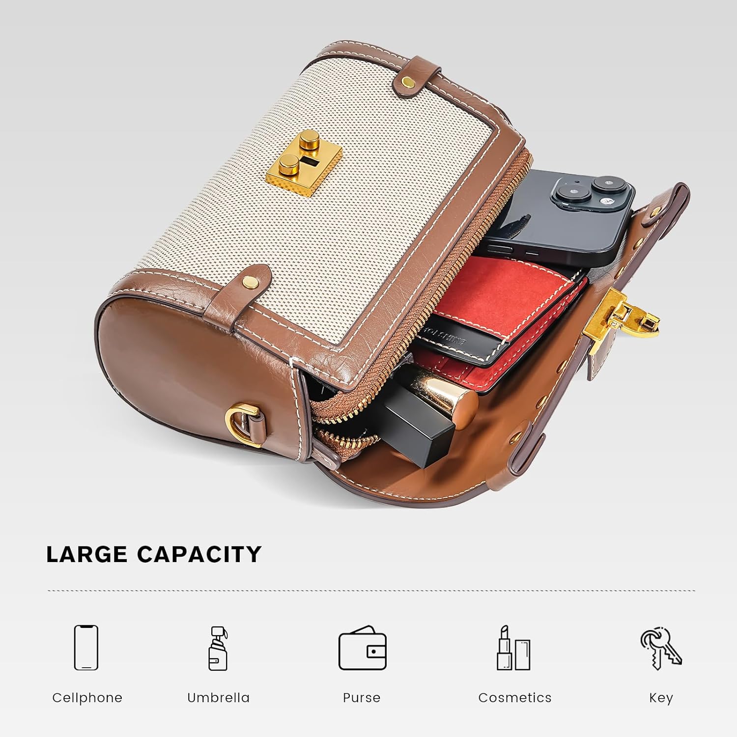 molshine Small Vintage Evening Genuine Leather Handbag, Shoulder Bag, Fashion Barrel Bag, Party Clutch Purse for Women Lady Party Work Travel HB005
