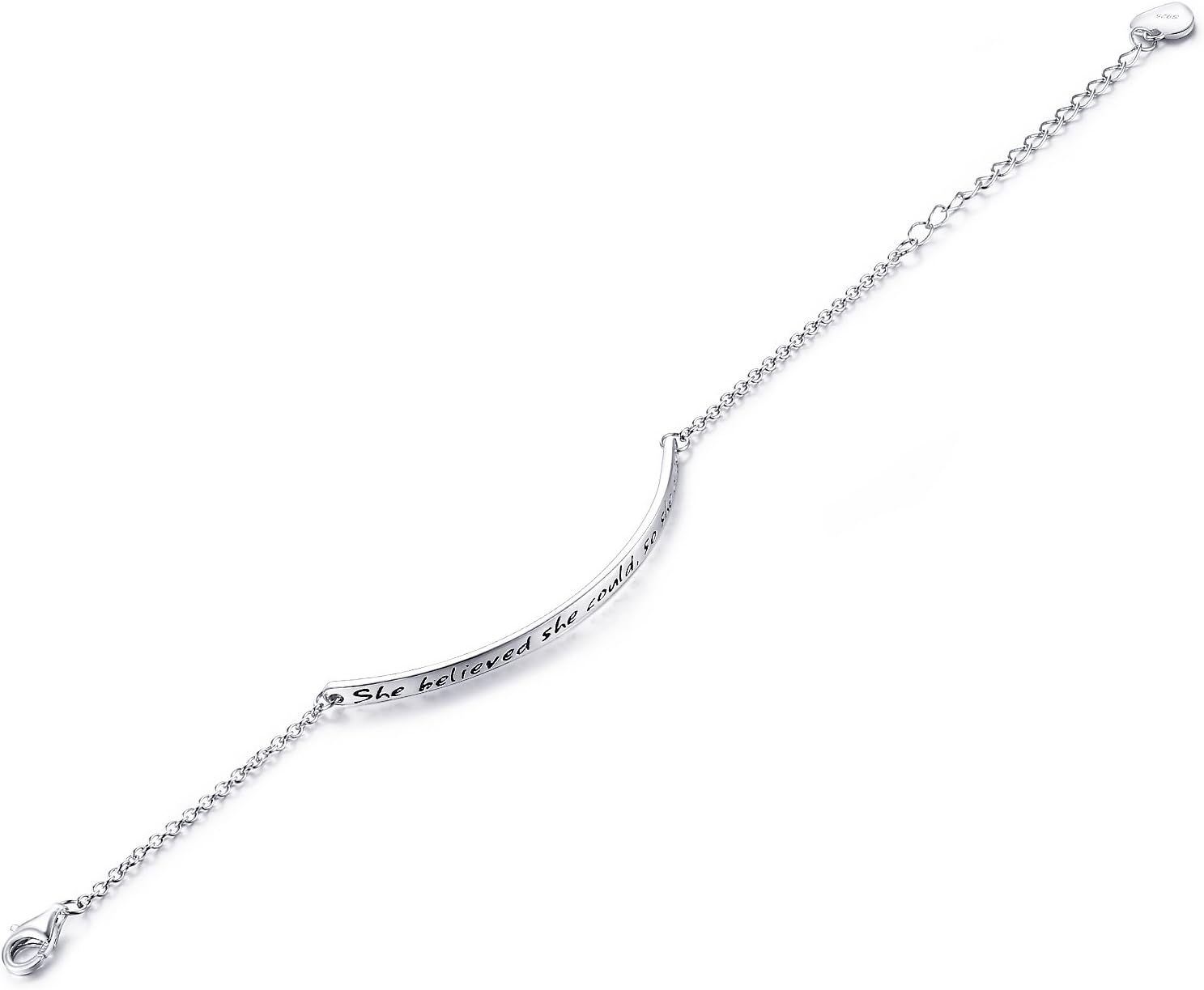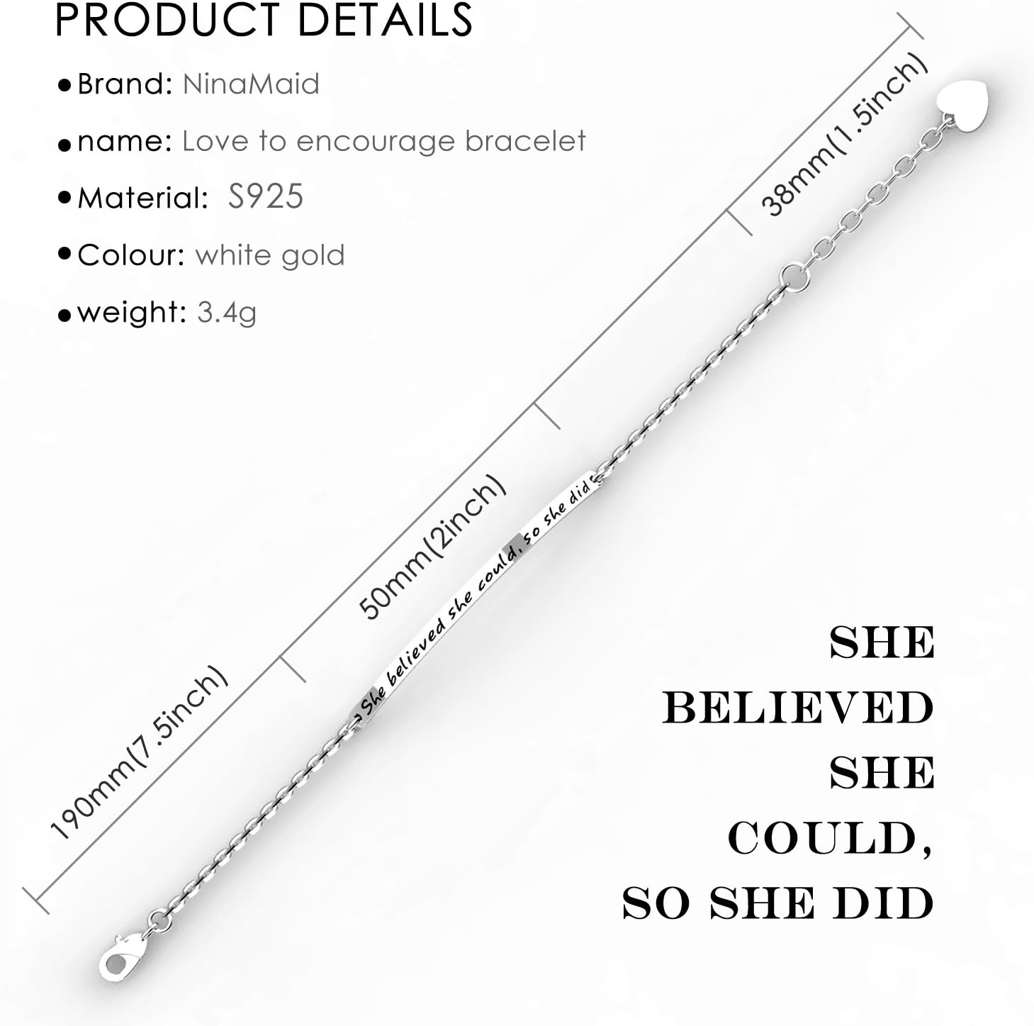 NINAMAID “She believed she could so she did” Engraved 925 Sterling Silver Inspirational Bangle Bracelets