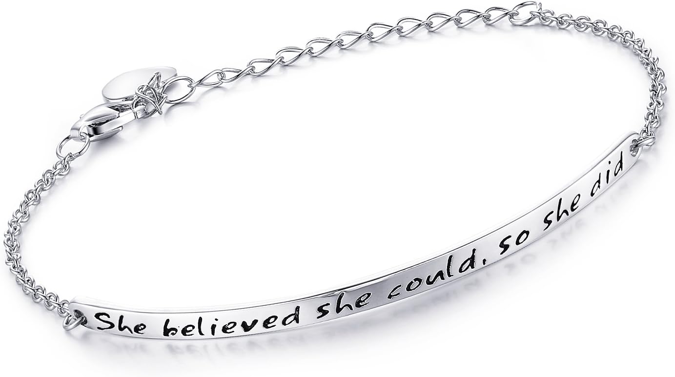 Engraved with “She believed she could, so she did” on the front side. This bracelet will give you confidence and strength. You can keep this inspirational bangle bracelet as a reminder of hard work.