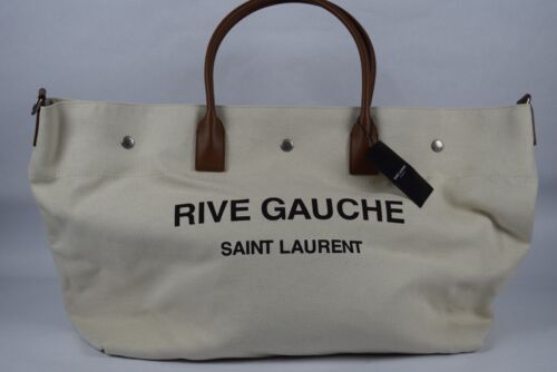NWT! Authentic YSL Saint Laurent Large Rive Gauche Maxi Canvas Tote Bag Cream