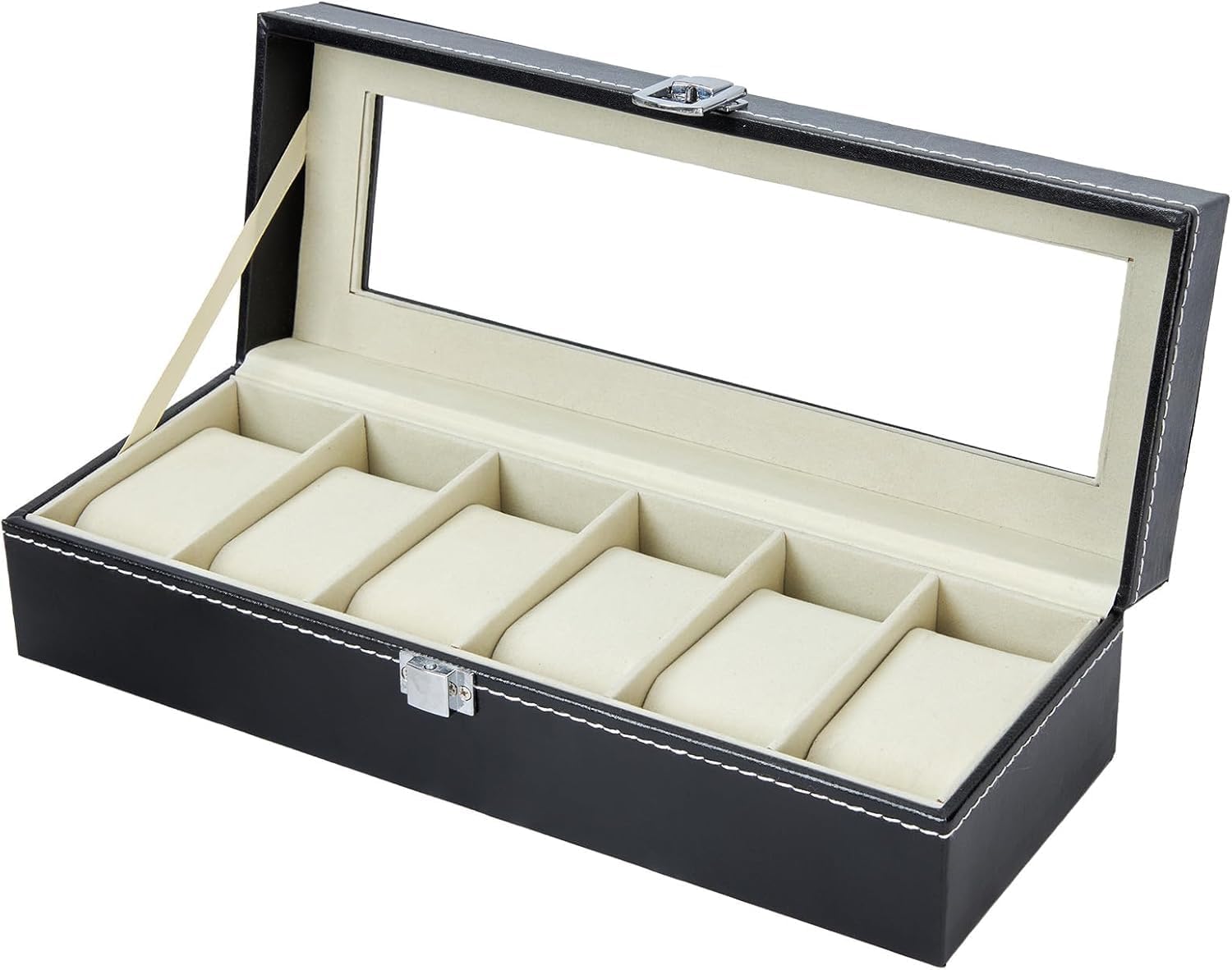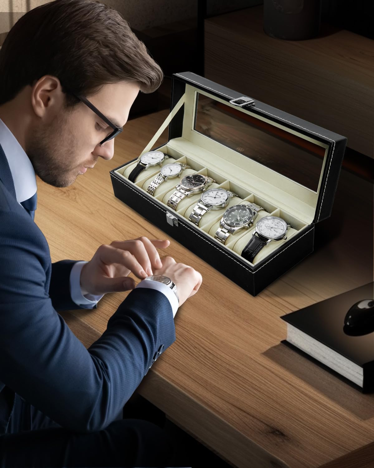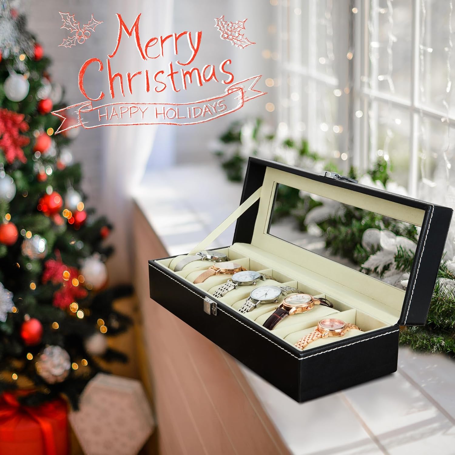 Ohuhu Watch Box for Men 6 Slot Watch Organizer Jewelry Box Leather Watch Cabinet Storage Organizer Case, Ideal for Christmas Birthday Father’s Day Thanksgiving Day