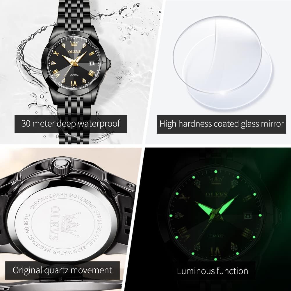 OLEVS Watch for Women Fashion Diamond Elegant Dress Analog Quartz Ladies Small Wrist Watches Stainless Steel Day Date Waterproof Luminous