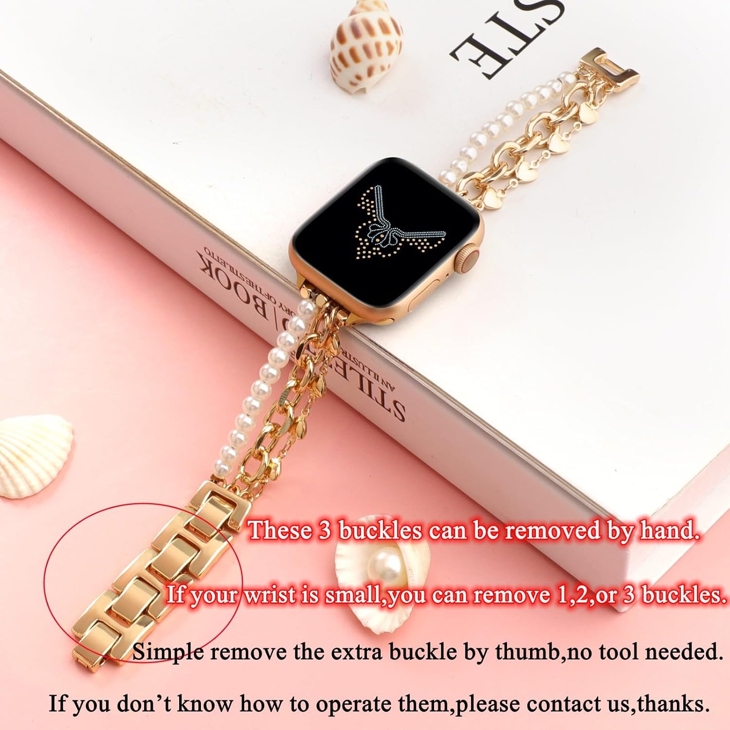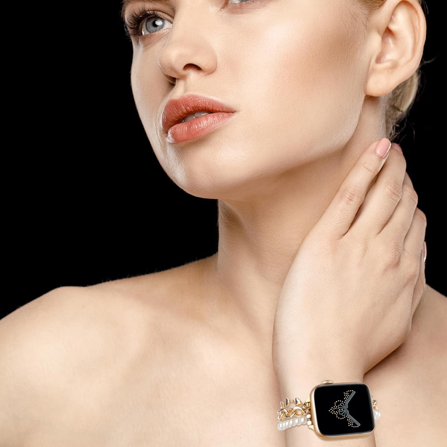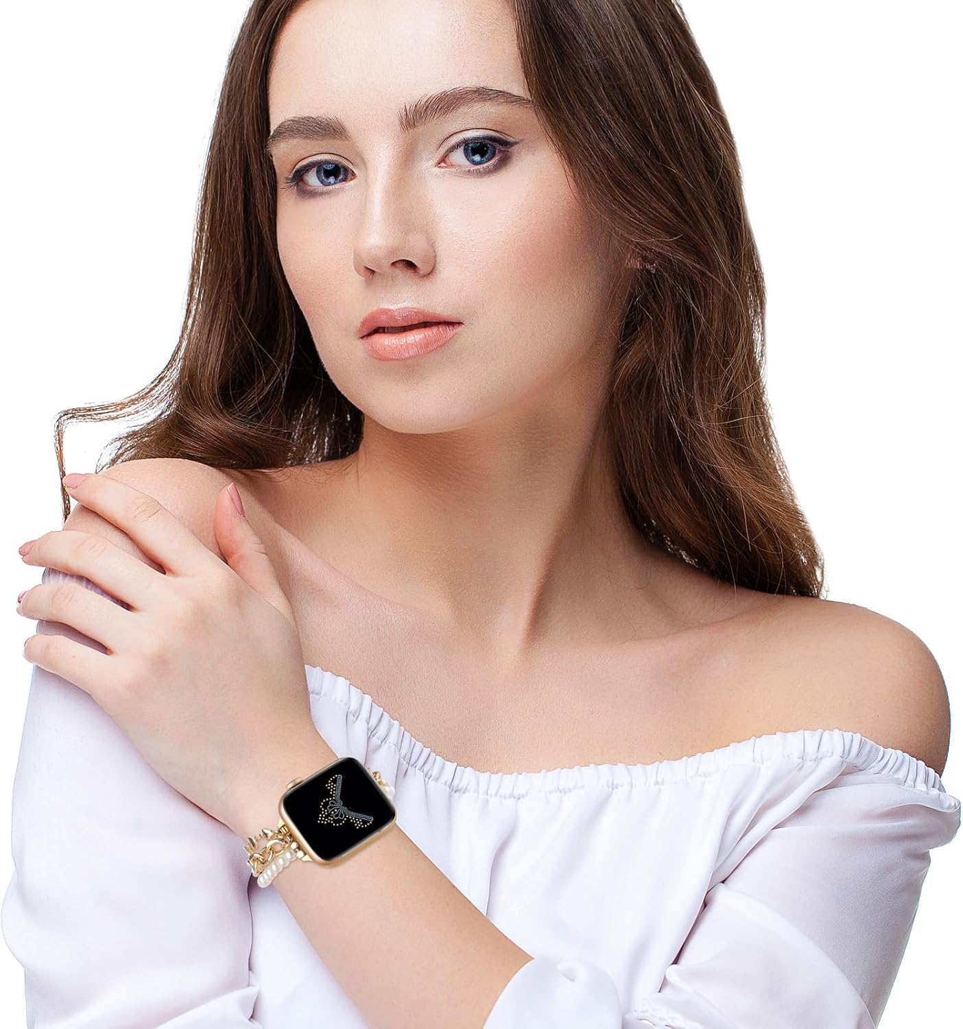 Pearl Beaded Bracelet Band Compatible with Apple Watch 38mm 40mm 41mm 42mm 44mm 45mm for Women Girl,Fashion Cute Handmade Bracelet Strap for iWatch Ultra/Series SE 9 8 7 6 5 4 3 2 1