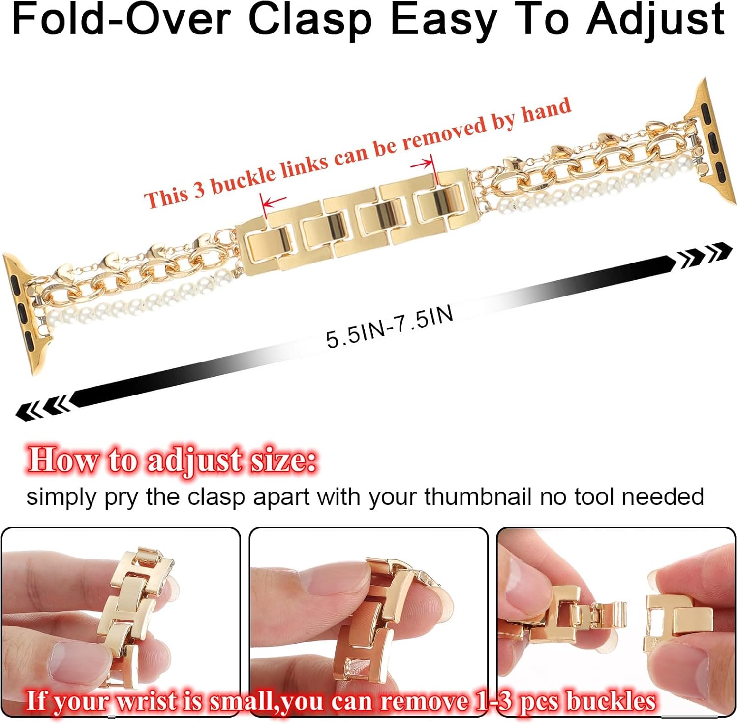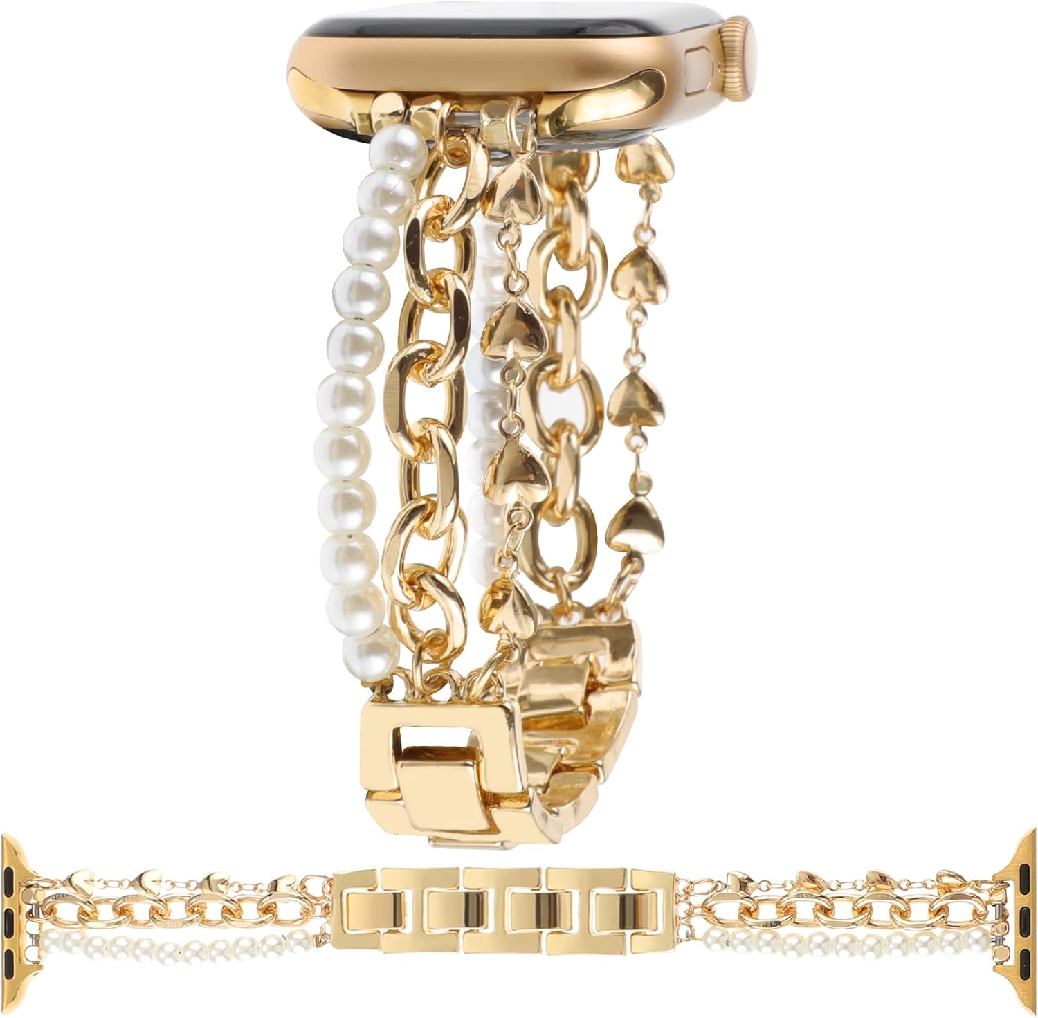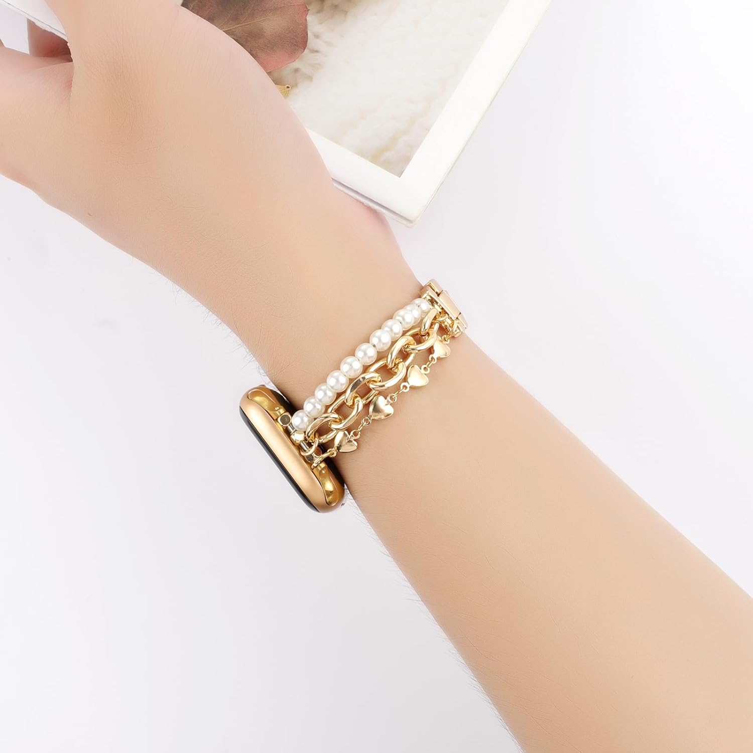 Pearl Beaded Bracelet Band Compatible with Apple Watch 38mm 40mm 41mm 42mm 44mm 45mm for Women Girl,Fashion Cute Handmade Bracelet Strap for iWatch Ultra/Series SE 9 8 7 6 5 4 3 2 1