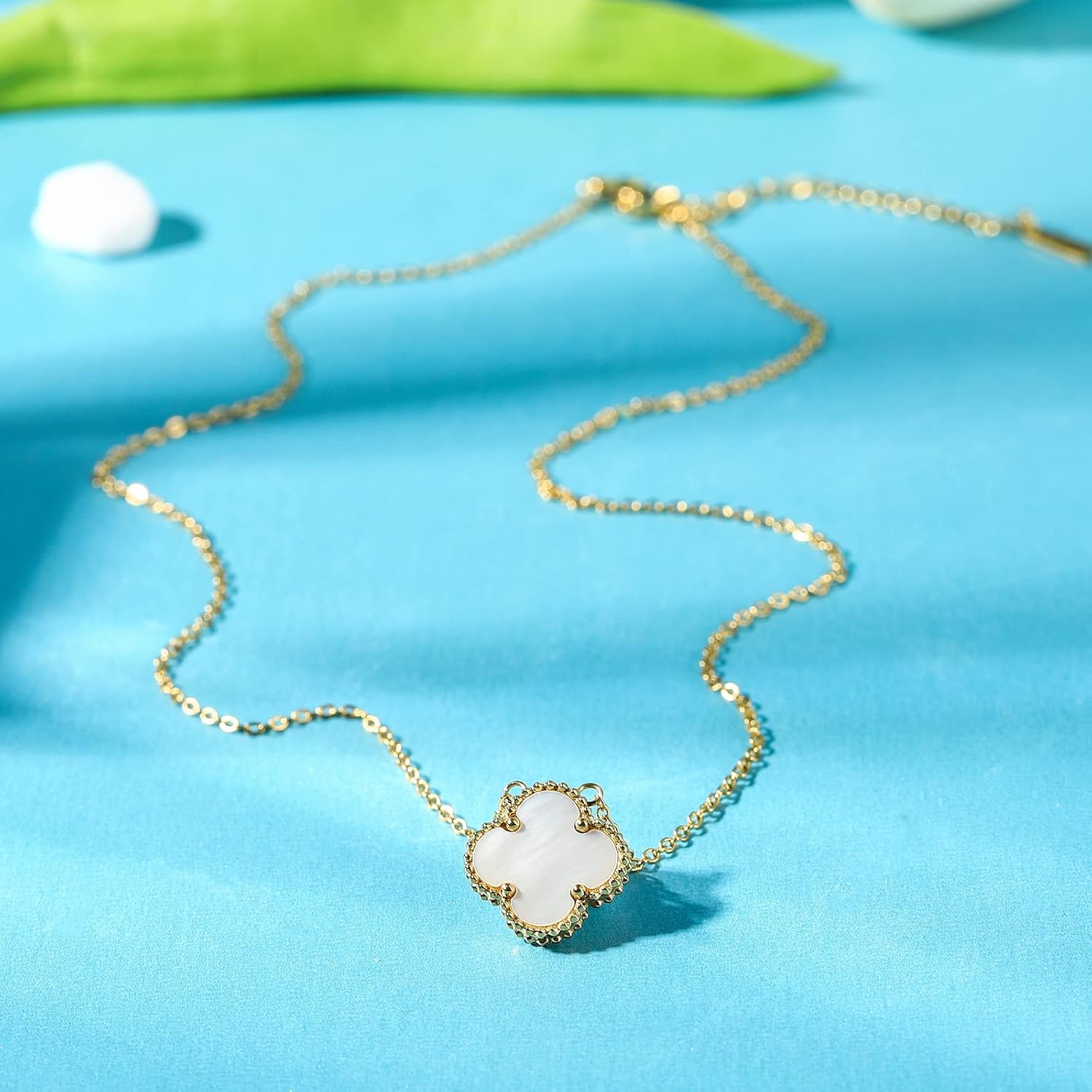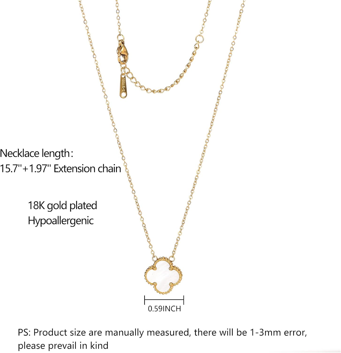POLYREAL Lucky Clover Necklace For Women Girls, 18K Gold Plated Cute Fashion Simple Girls Titanium Steel Hypoallergenic Pendant