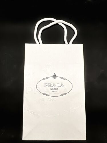 Prada Paper Shopping Gift Bag Embossed White Blue Logo Print 10″ x 6.25″ x 3″