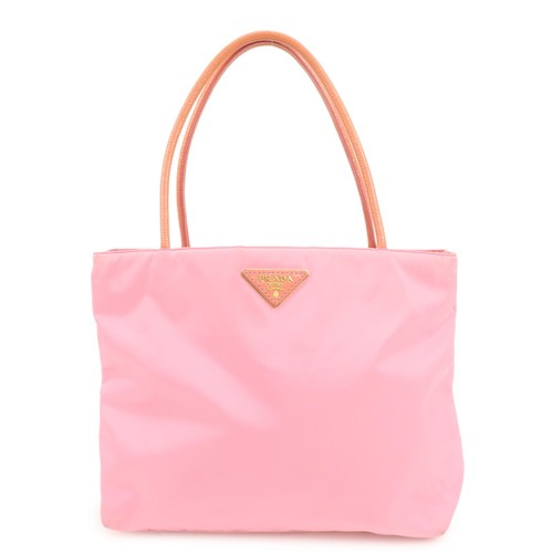 PRADA Triangle Logo Nylon Patent Leather Tote Bag Shoulder Bag Pink Used F/S