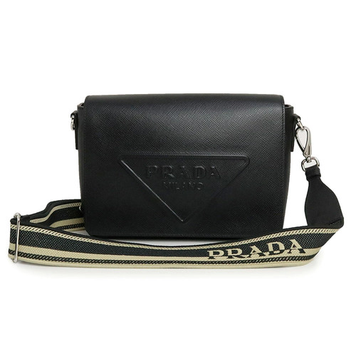 PRADA Triangle Plate Shoulder Bag SAFFIANO CUIR Saffiano Nero 2VD046 #668