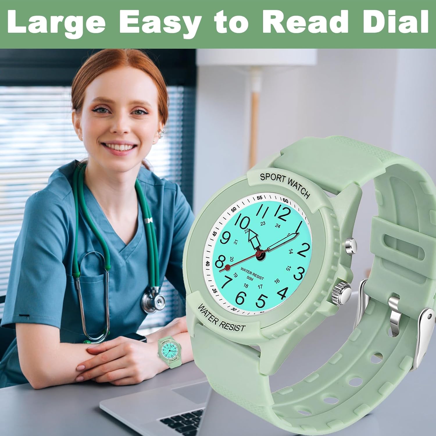 PROKING Women’s Watch Sport Waterproof Watches Nurse Minimalist Simple Analog Watch Casual Ladies Men’s Watch, Easy Read Dial, Military Time with Second Hand, Silicone Band, Light