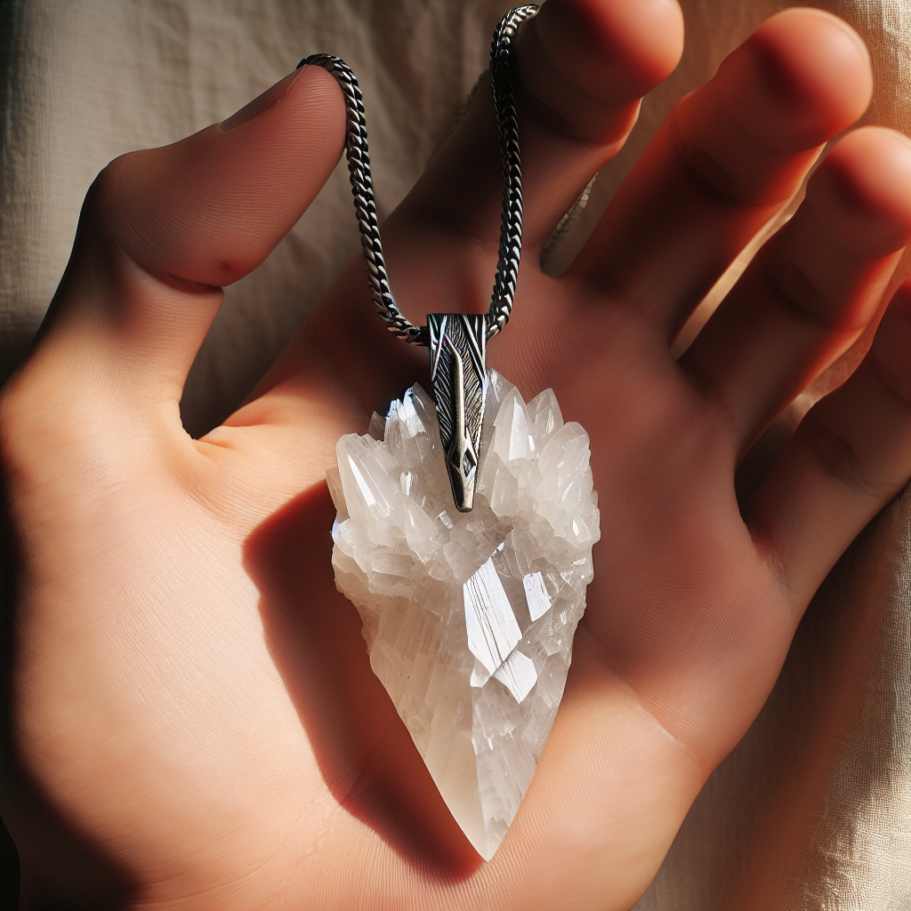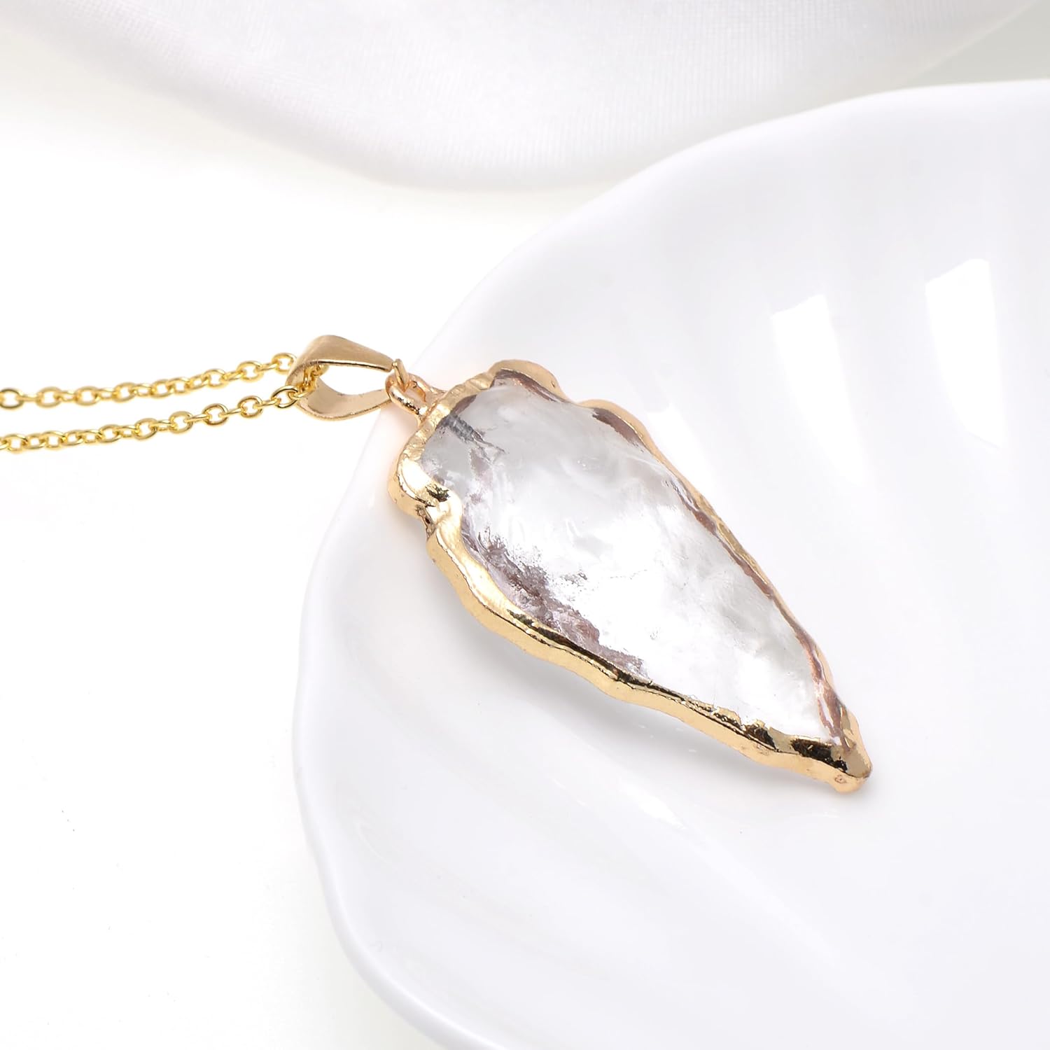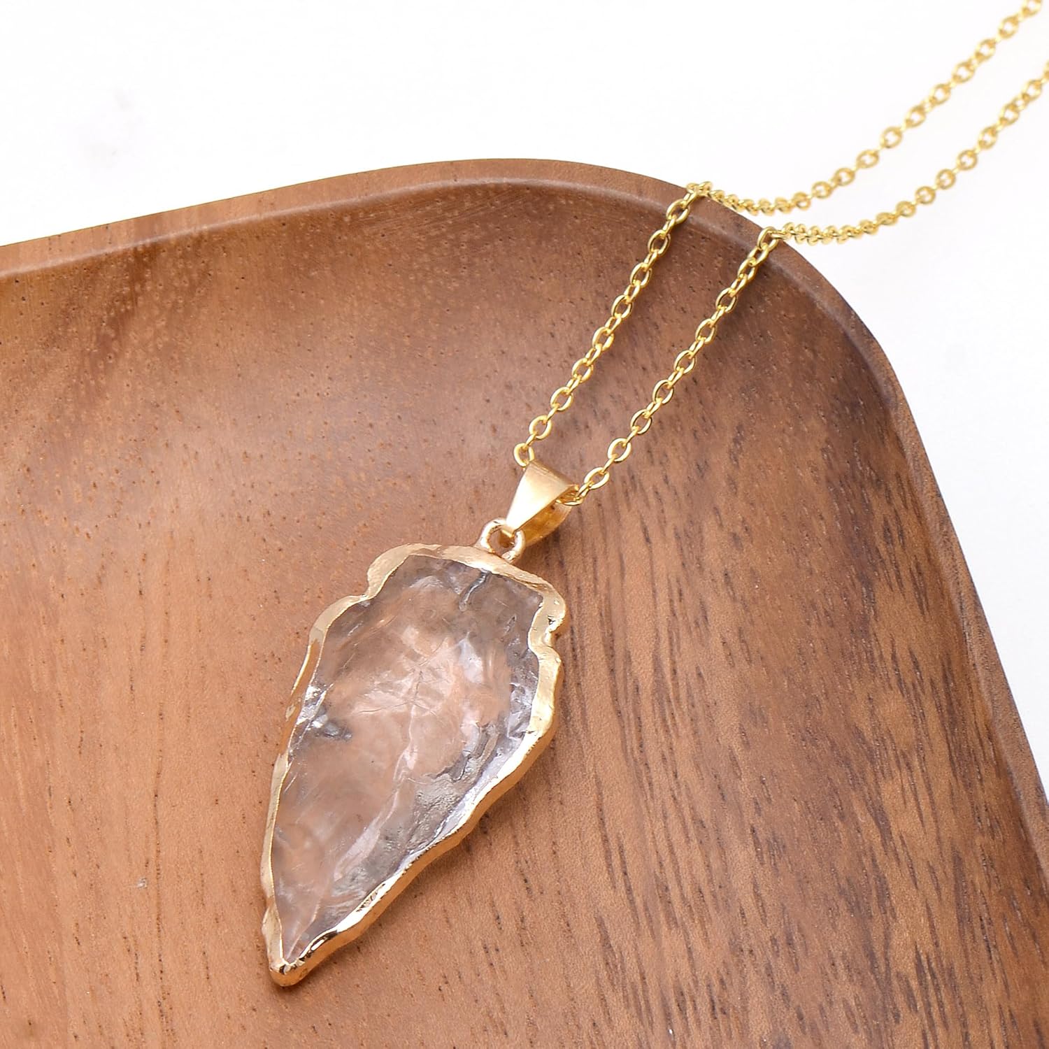 This is a hand crafted arrowhead crystal pendant necklace, natural white quartz necklace for women and men