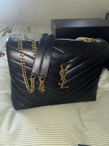 REAL YSL Saint Laurent Medium Loulou Matelassé Leather Shoulder Bag Black/Gold