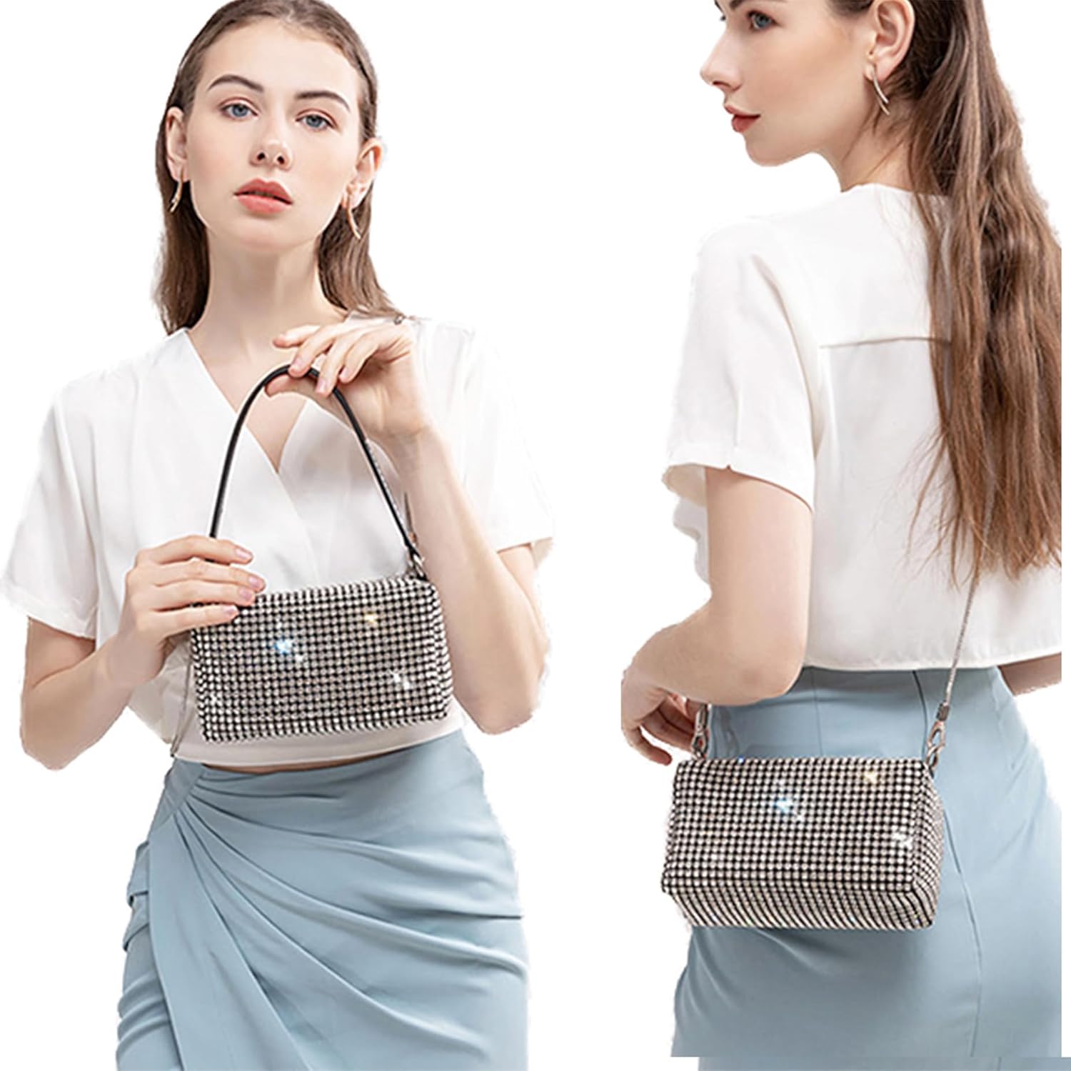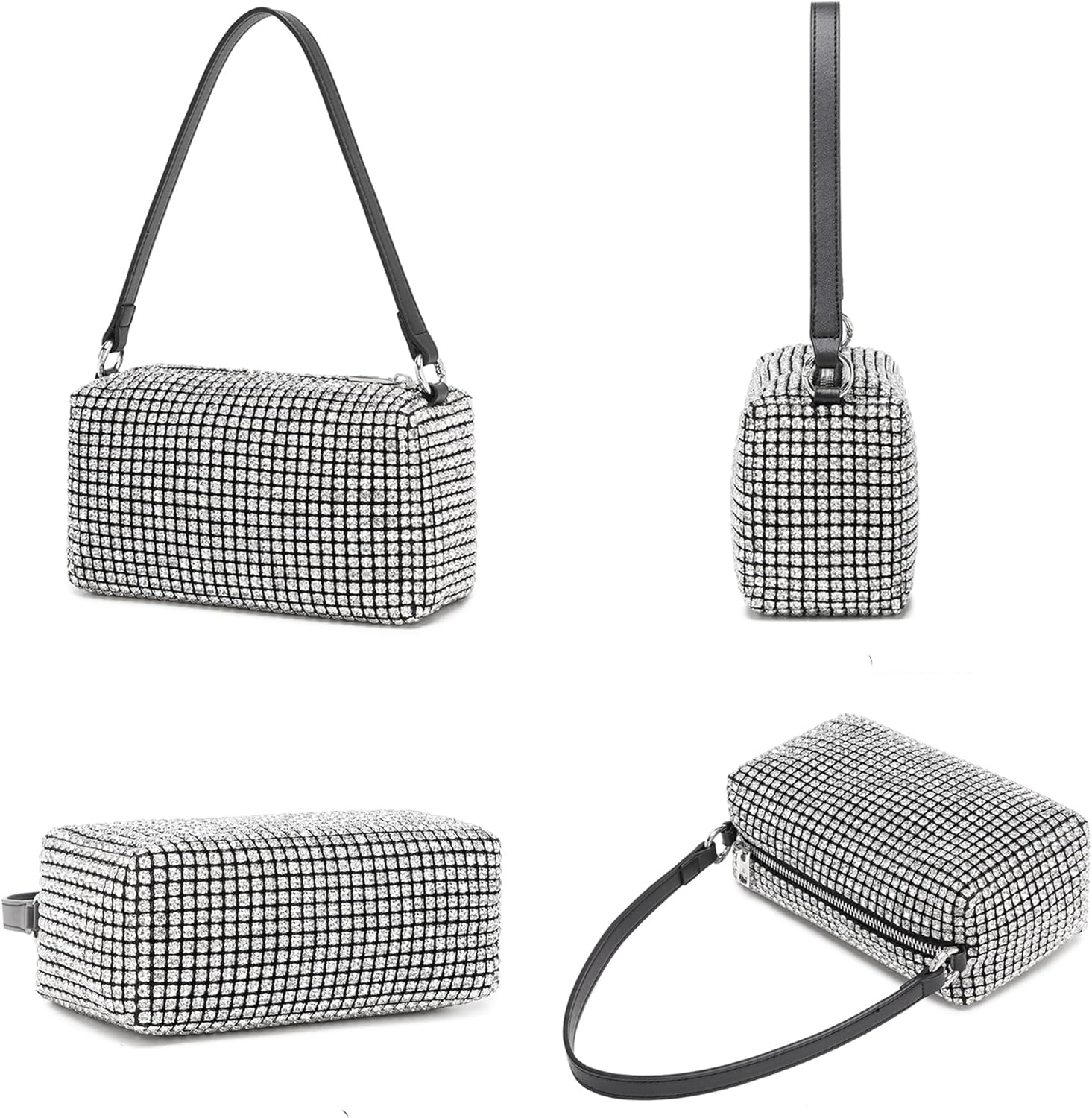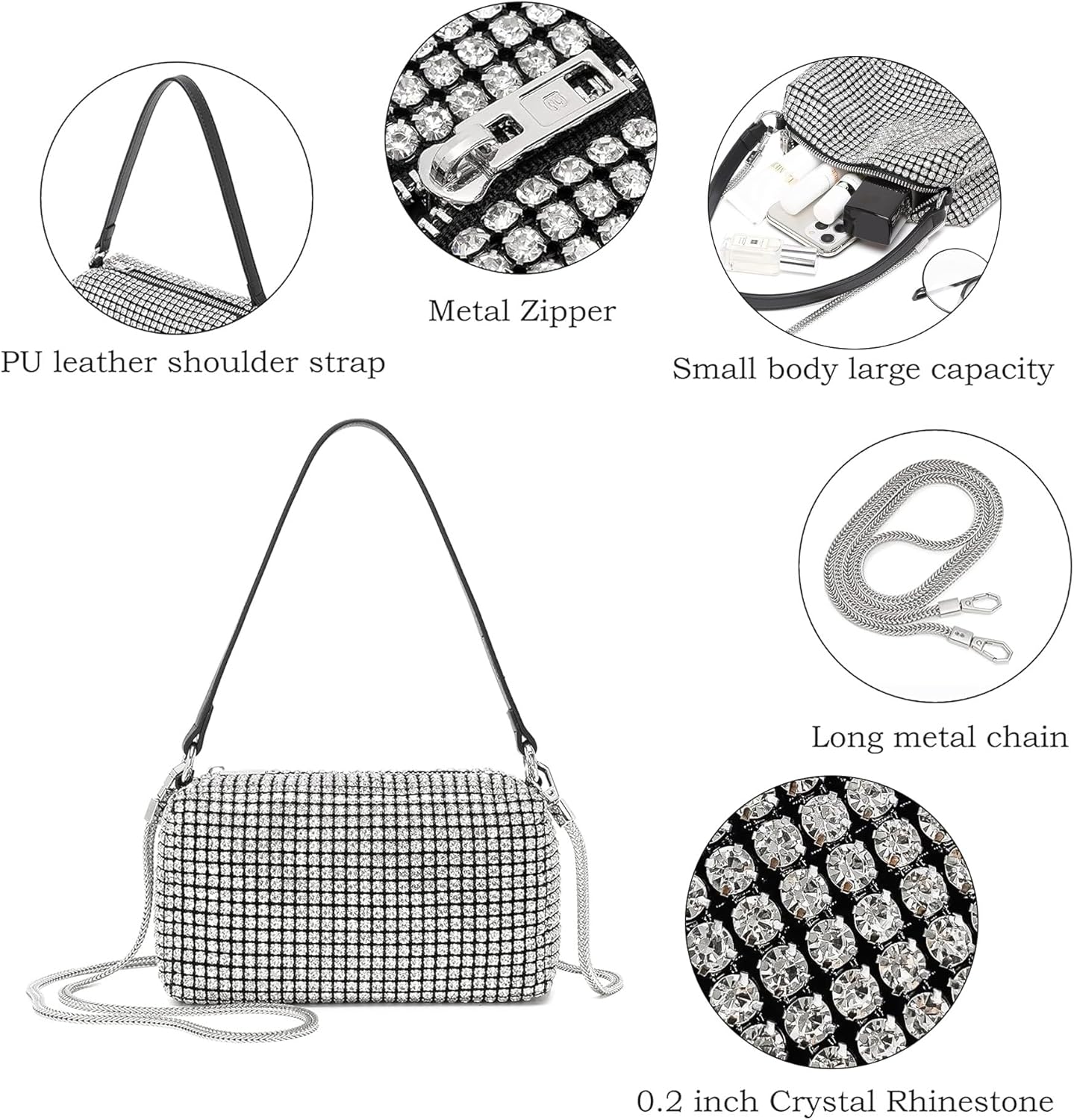 Rhinestone Purse for Women Sparkly Rhinestone Bag Evening Bag Silver Clutch Purses Bling Crossbody Bags for Women