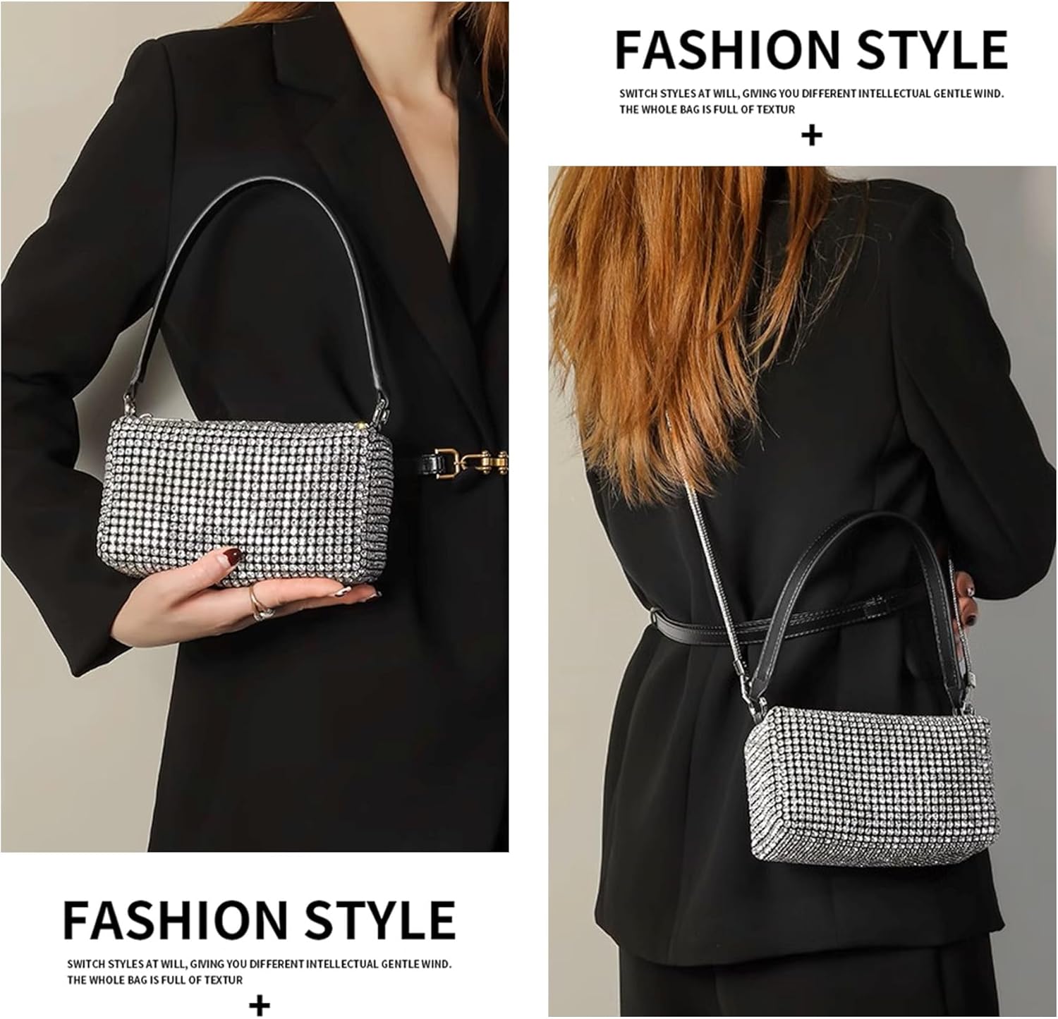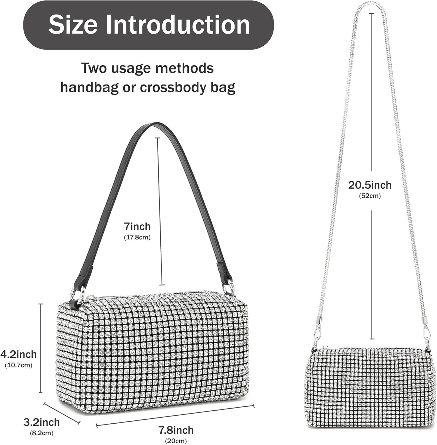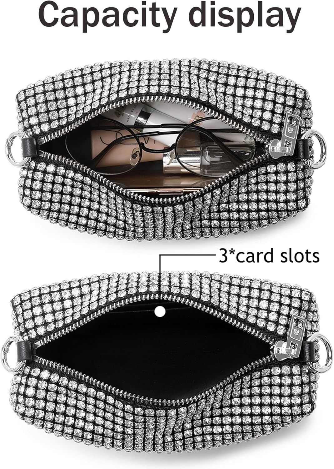 Rhinestone Purse for Women Sparkly Rhinestone Bag Evening Bag Silver Clutch Purses Bling Crossbody Bags for Women