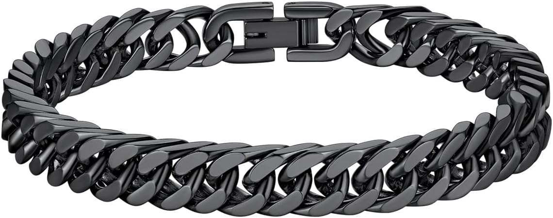 Richsteel Bracelets for Men Cuban Link Chain Stainless Steel/Gold/Black Plated Bracelet for Women 8/12/17mm Width, 7.4/8.2/9 Inch Length Classic Jewelry