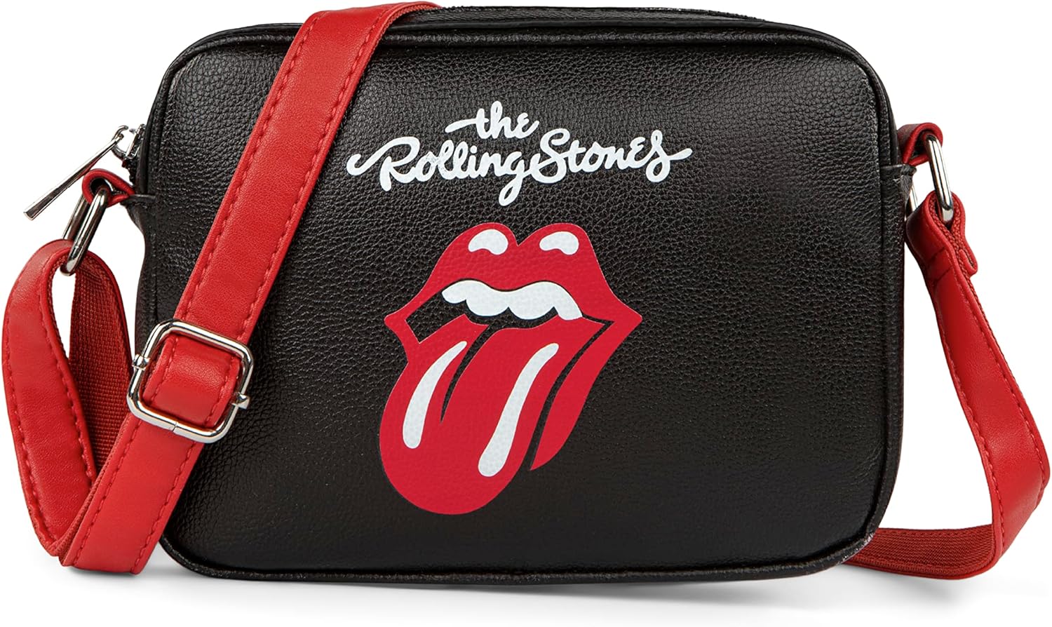 Rolling Stones Majesties Collection Crossbody Bag for Women, Men, Girls, and Teens, Officially Licensed Lightweight Vegan Leather Purse for Travel, Fits Phone, Wallet, and More, Black/Red