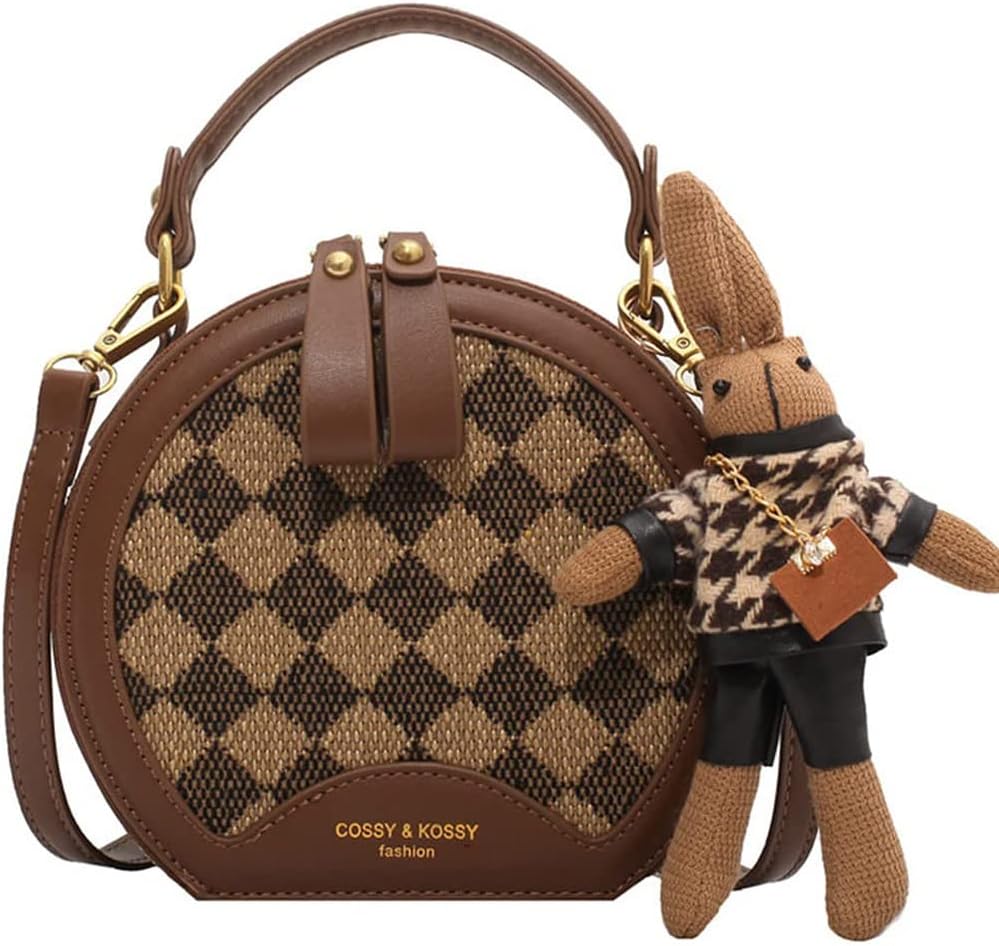 Trendy Retro Style Women Small Shoulder Barrel Bag Tote Satchels with Cute Pendant