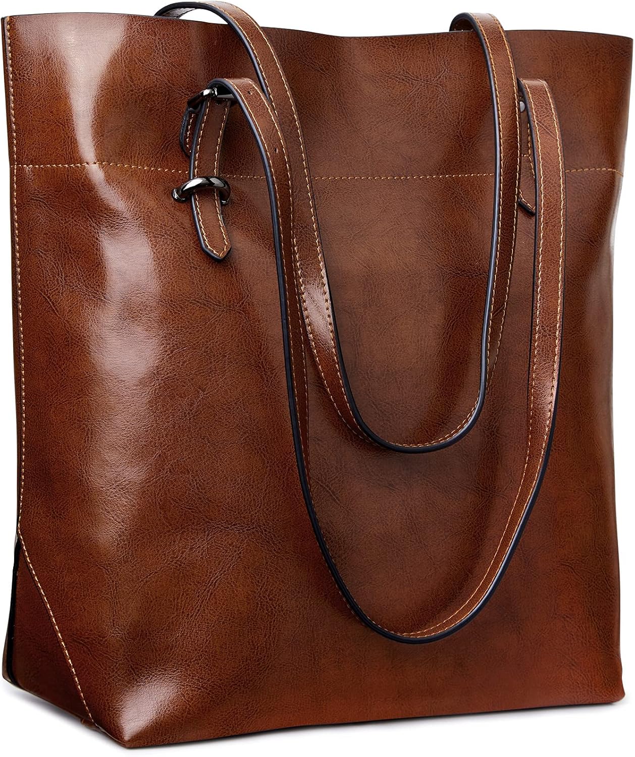 S-ZONE Vintage Genuine Leather Tote Shoulder Bag Handbag Big Large Capacity Upgraded 2.0