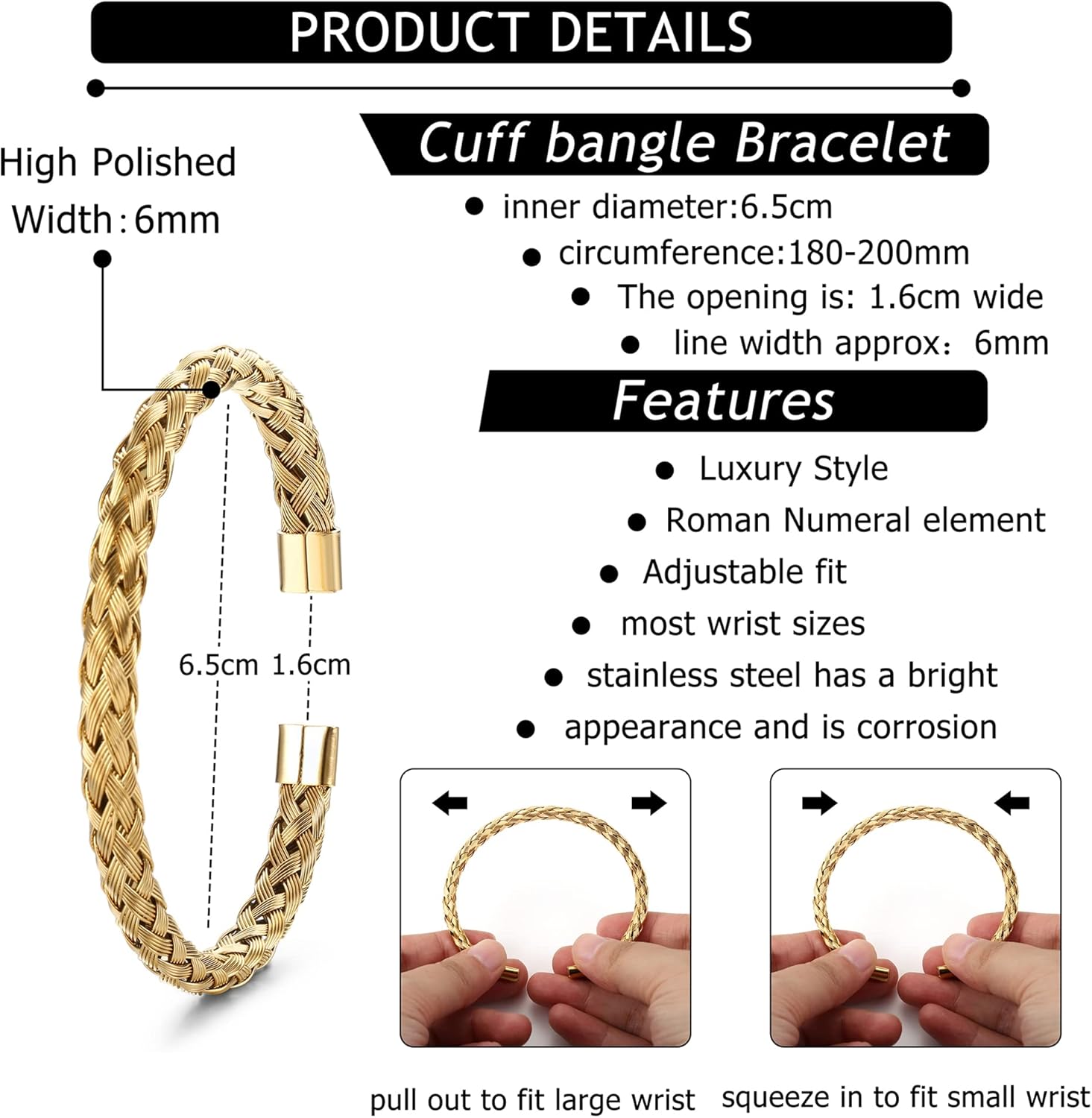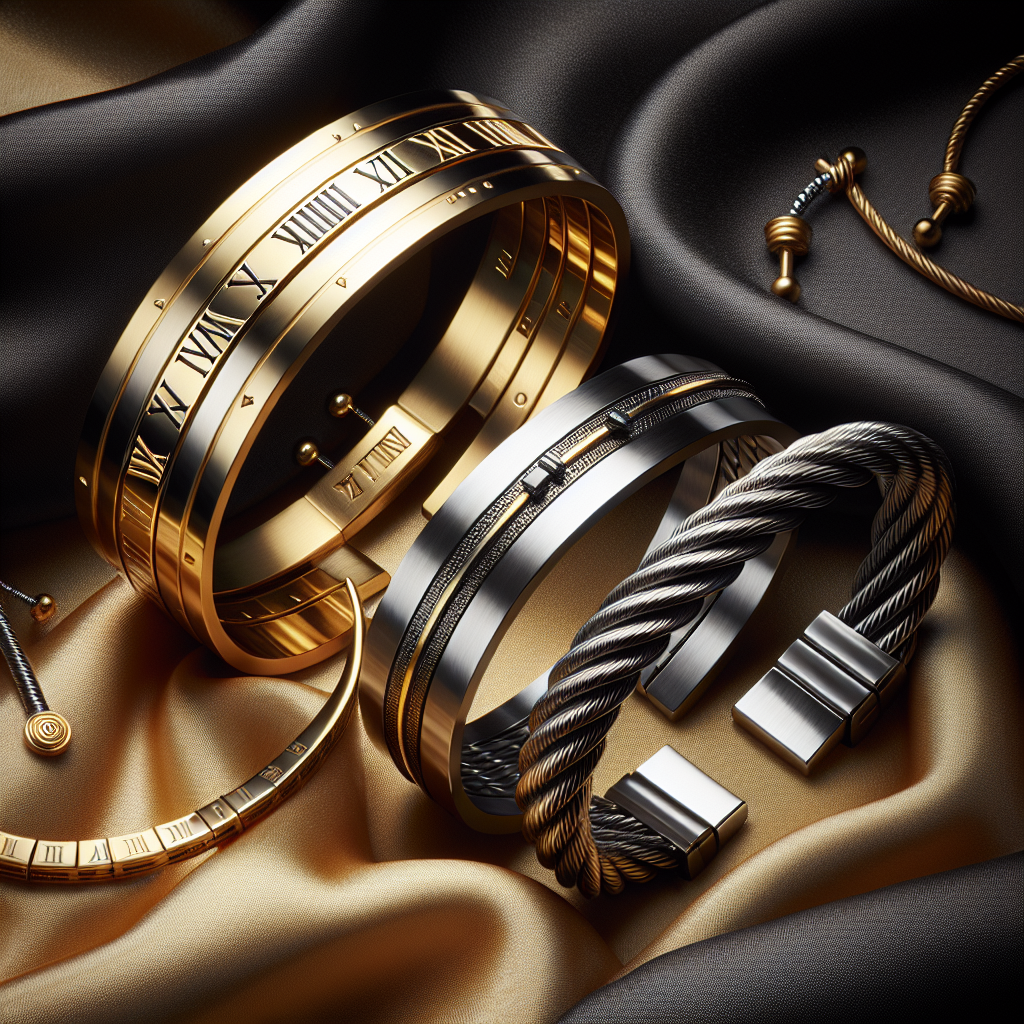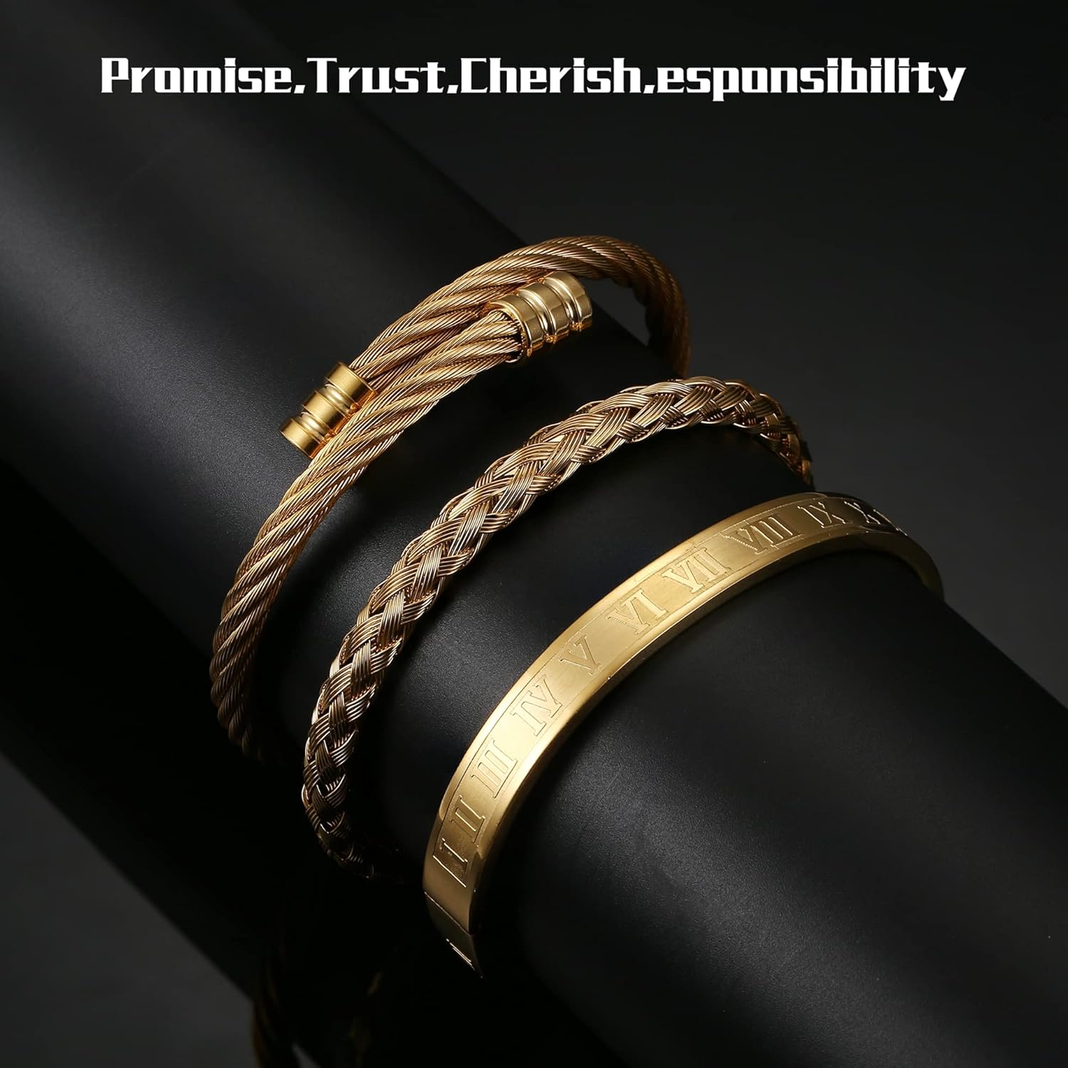 SAILIMUE 3Pcs Stainless Steel Bracelets for Men Roman Numeral Bangle Bracelet Adjustable Cuff Bracelet Twisted Cable Bracelet Mens Luxury Bracelets Jewelry Gifts Gold/Silver/Black