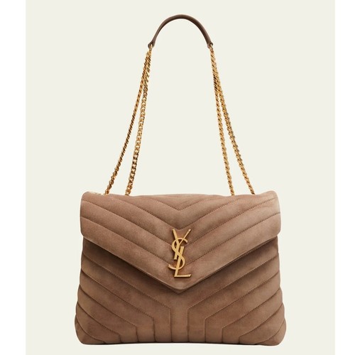 Saint Laurent Medium LouLou Quilted Suede Shoulder Bag in Taupe NEW MSRP $3450