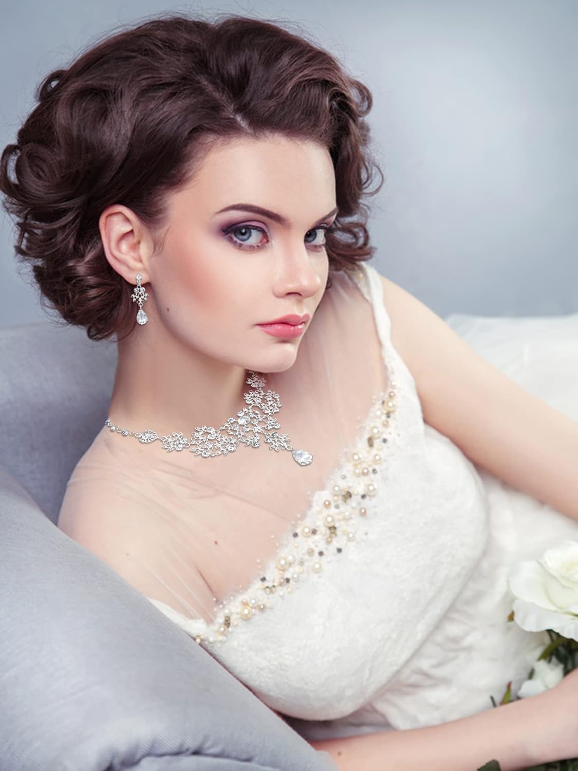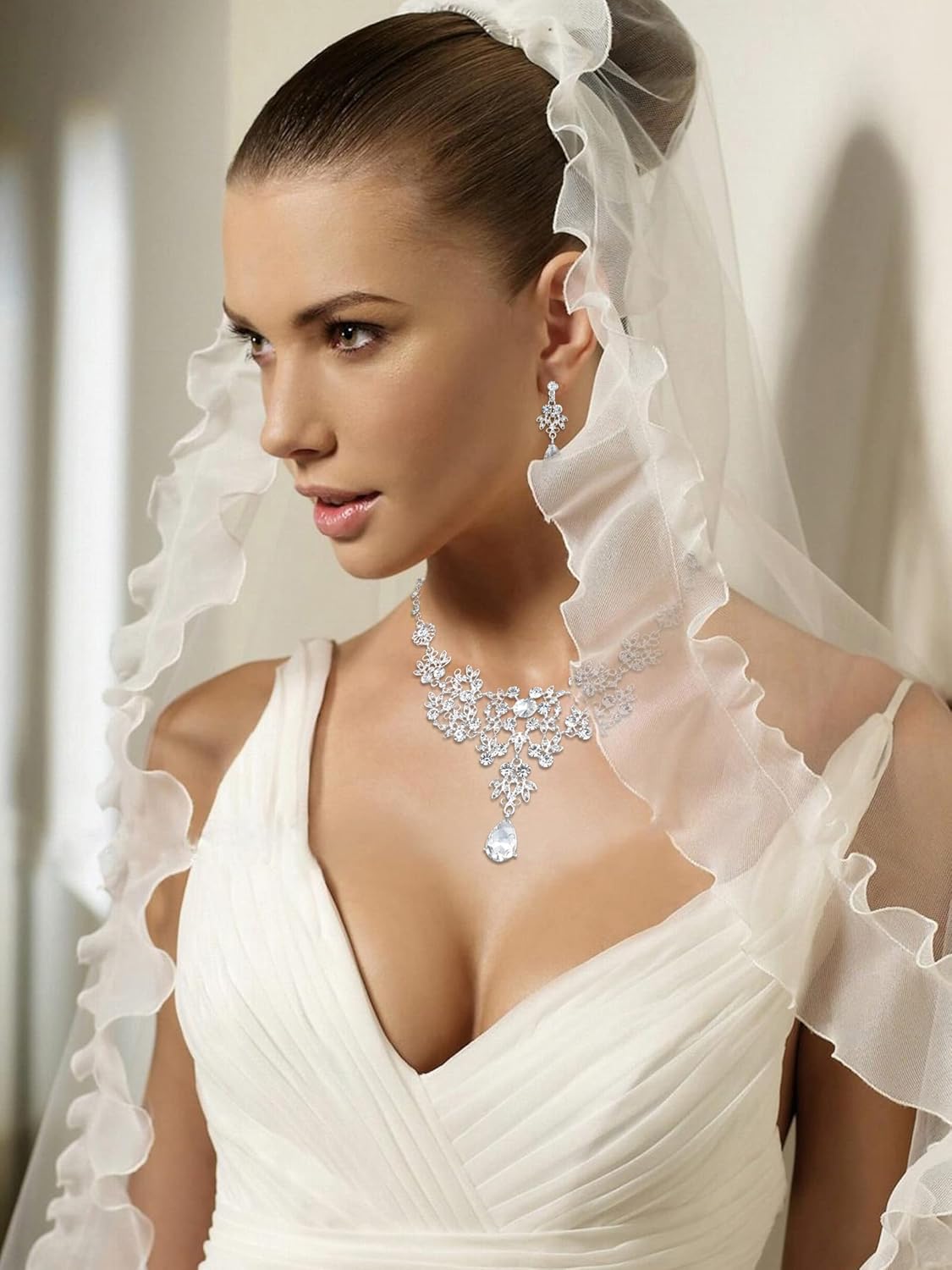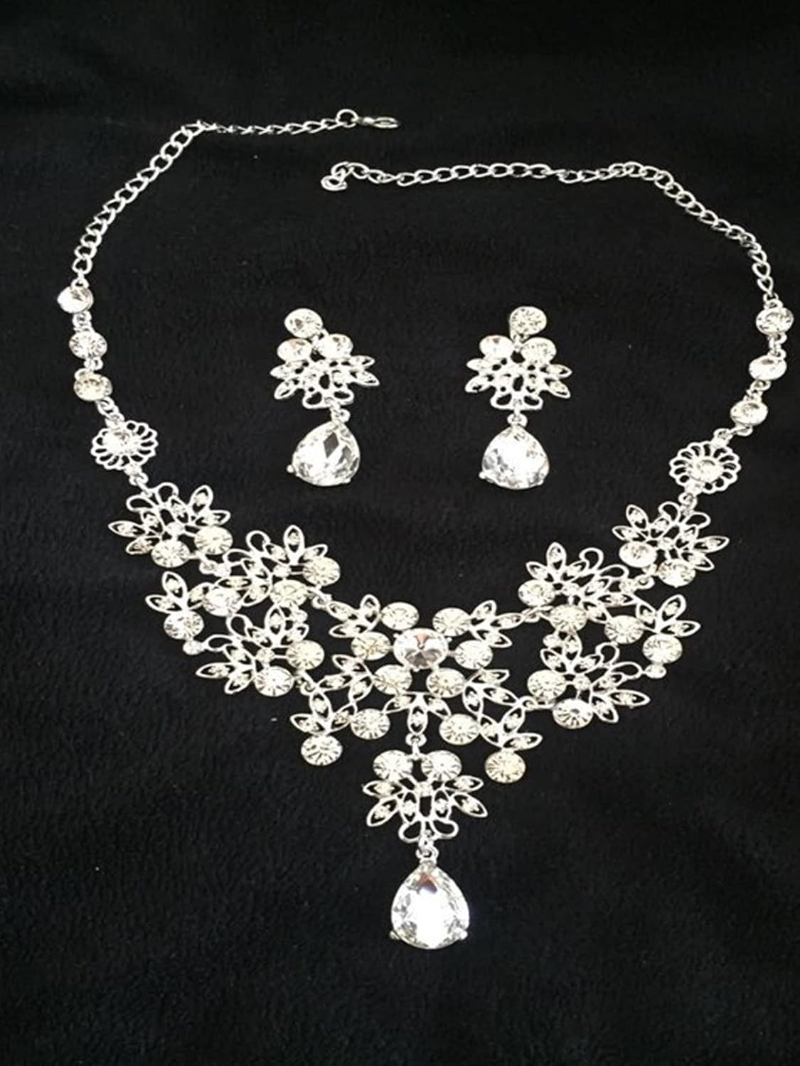 Silver Jewelry Prom Jewelry Costume Jewelry Set for Women Sparkling Rhinestone Necklace Bracelet Earrings Set Silver Jewelry Set Prom Costume Accessories for Women