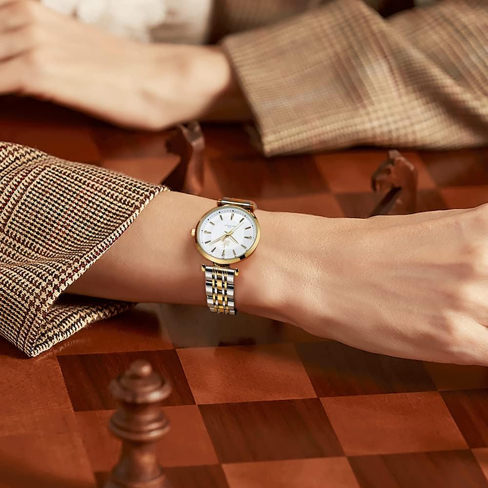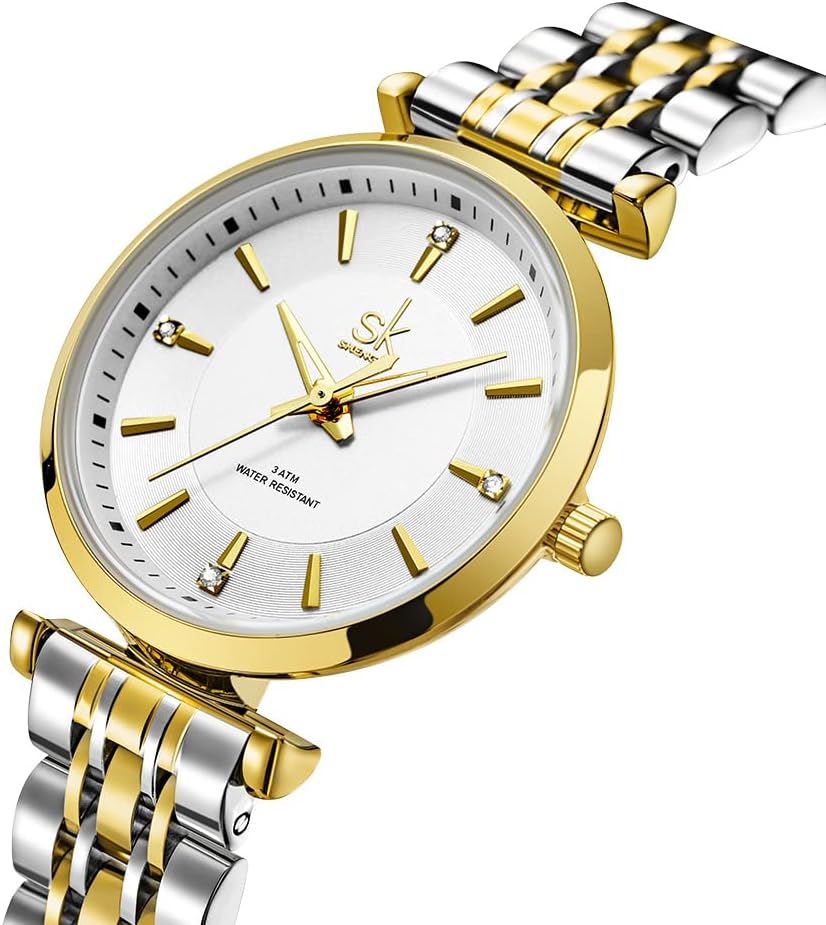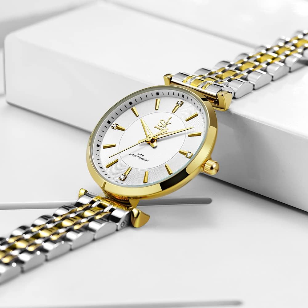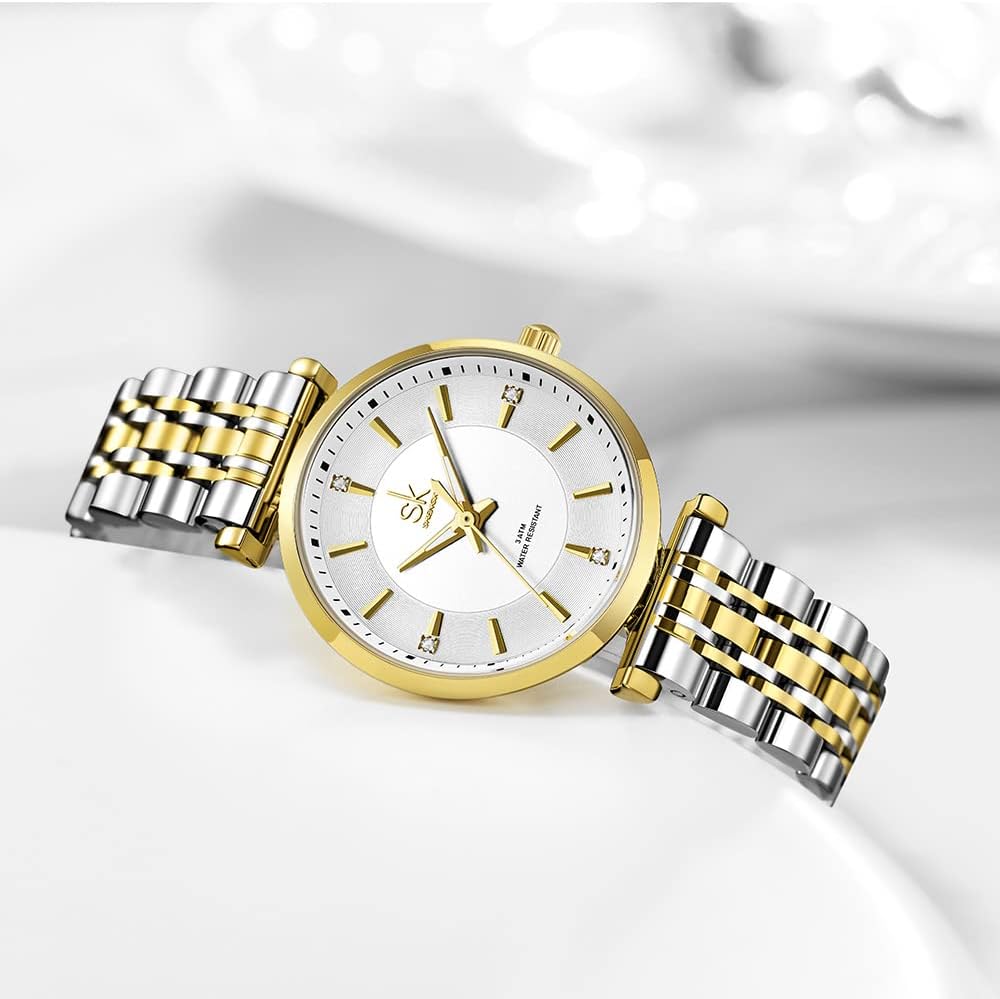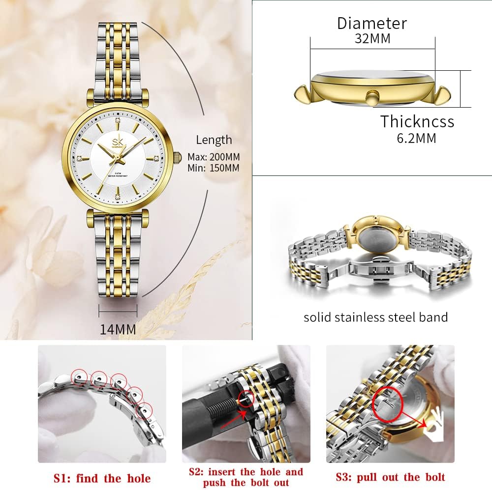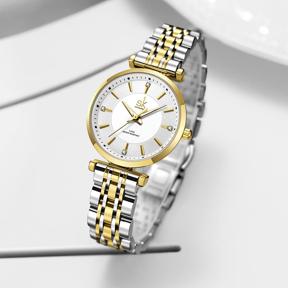 SK Classic Women Watches Fashion Ladies Dress Watch Solid Stainless Steel Band Genuine Leather Strap