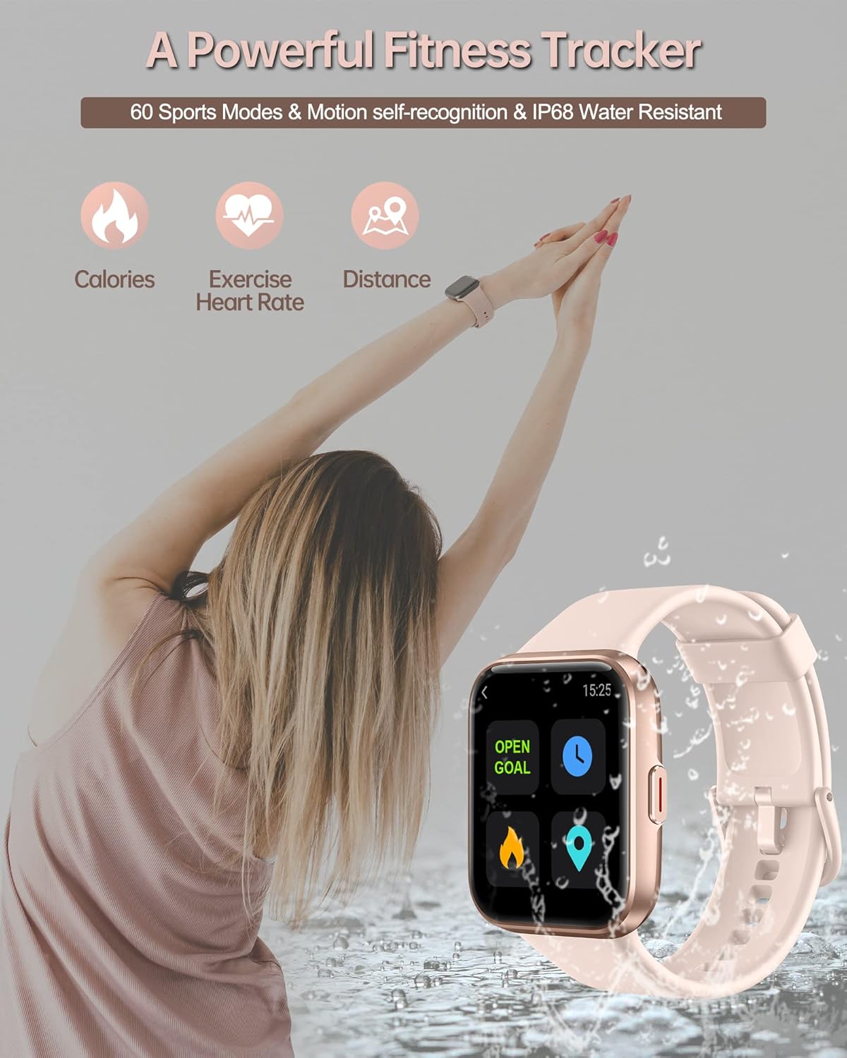 The fitness tracker supports 60 sports modes totally, such as running, walking, cycling, hiking, swimming, yoga,dance and others.Set a goal and get real-time stats during your workout. Quickly view your pace & distance & burned calories on the watch.View the movement track in detail through your phone. (The sports watch itself has 24 sports modes, and other modes need to be easily added through the VeryFit APP.)