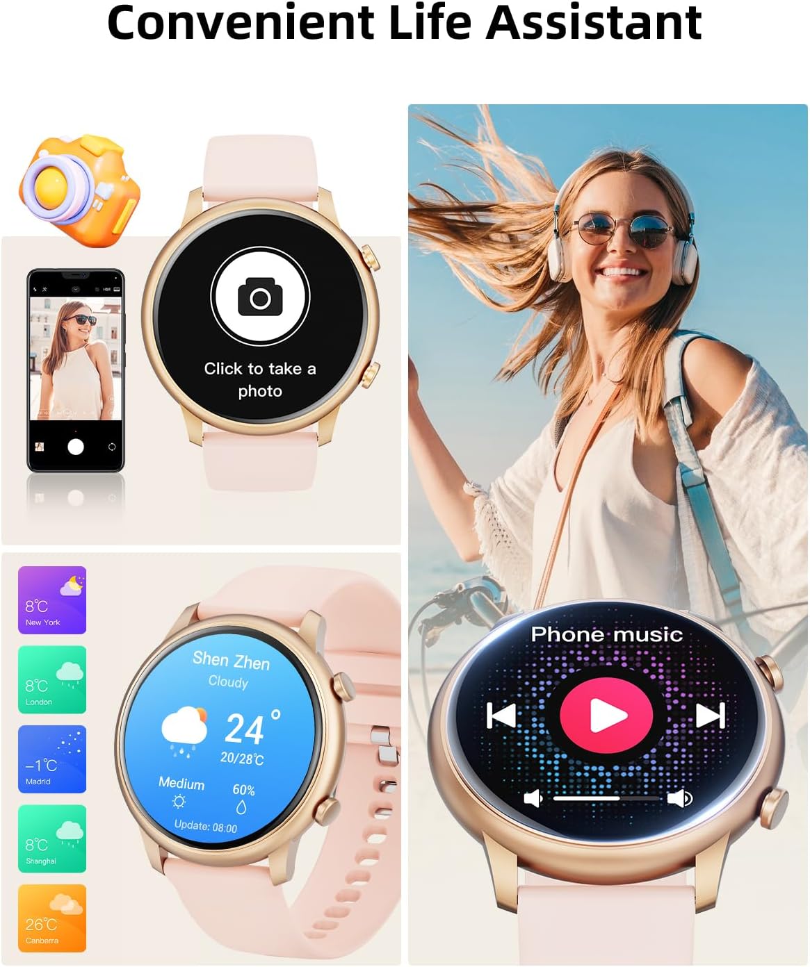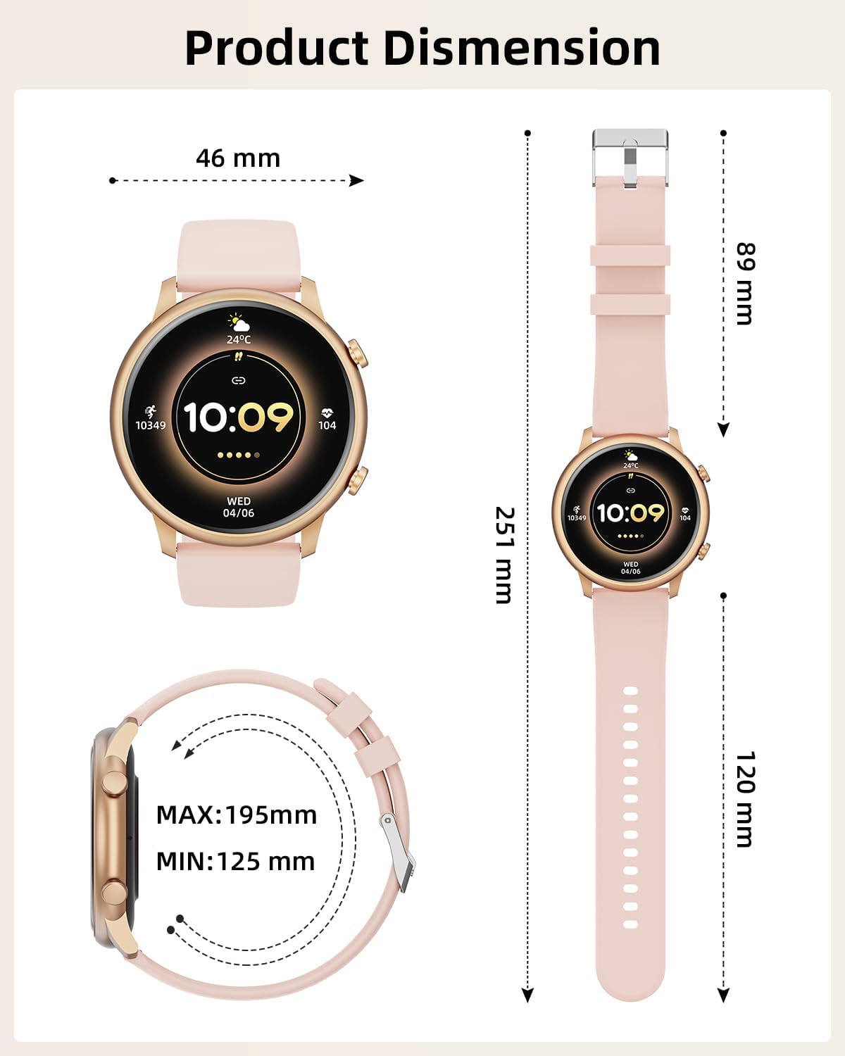 ✨【Sleek & Stylish Luxe Appeal】This smart watch combines elegance with cutting-edge tech. Featuring a 1.39-inch smart watches for women-inspired finish, it effortlessly transitions from gym sessions to outings. DIY dial by uploading your favorite photos through the customizable face, such as selfies, pets, landscape pictures, etc. to show your personality or match your daily dress up and mood! 360*360 high-resolution color screen displays captions and patterns in clear and detailed.