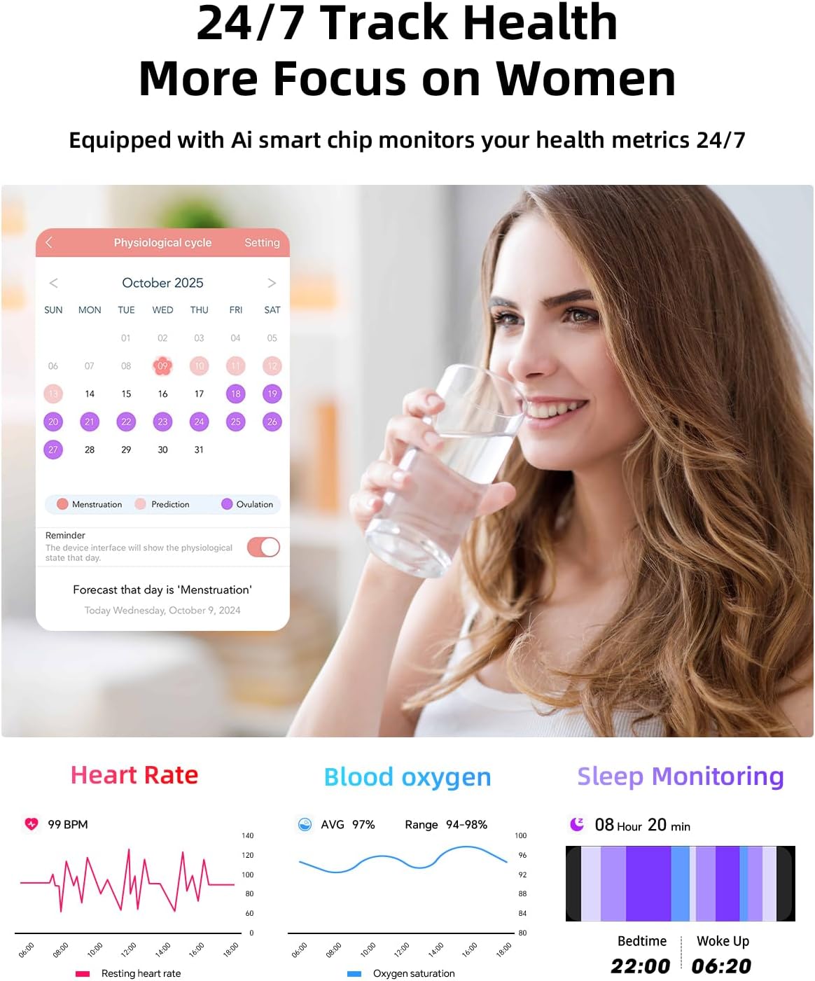 ✨【More functions and reliable after-sales service】This activity fitness tracker is a health and lifestyle assistant with multiple functions such as alarm clock, camera control, female health tracking, weather, music control, stopwatch, timer, raise to wake, etc. At the same time, we are backed by reliable and friendly customer service. You’re covered with any questions or concerns, and we’ll support you every step of the way!