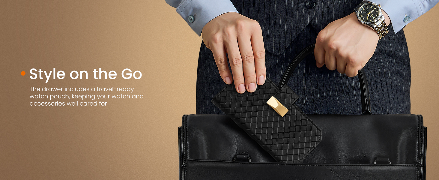 【EXTRA WATCH POUCH, CONVENIENCE ON THE GO】The watch case includes a portable watch pouch, designed to hold 1 watch and 2 straps. Compact and lightweight, you can easily slip it into your bag and take your watch with you for business travel or vacation