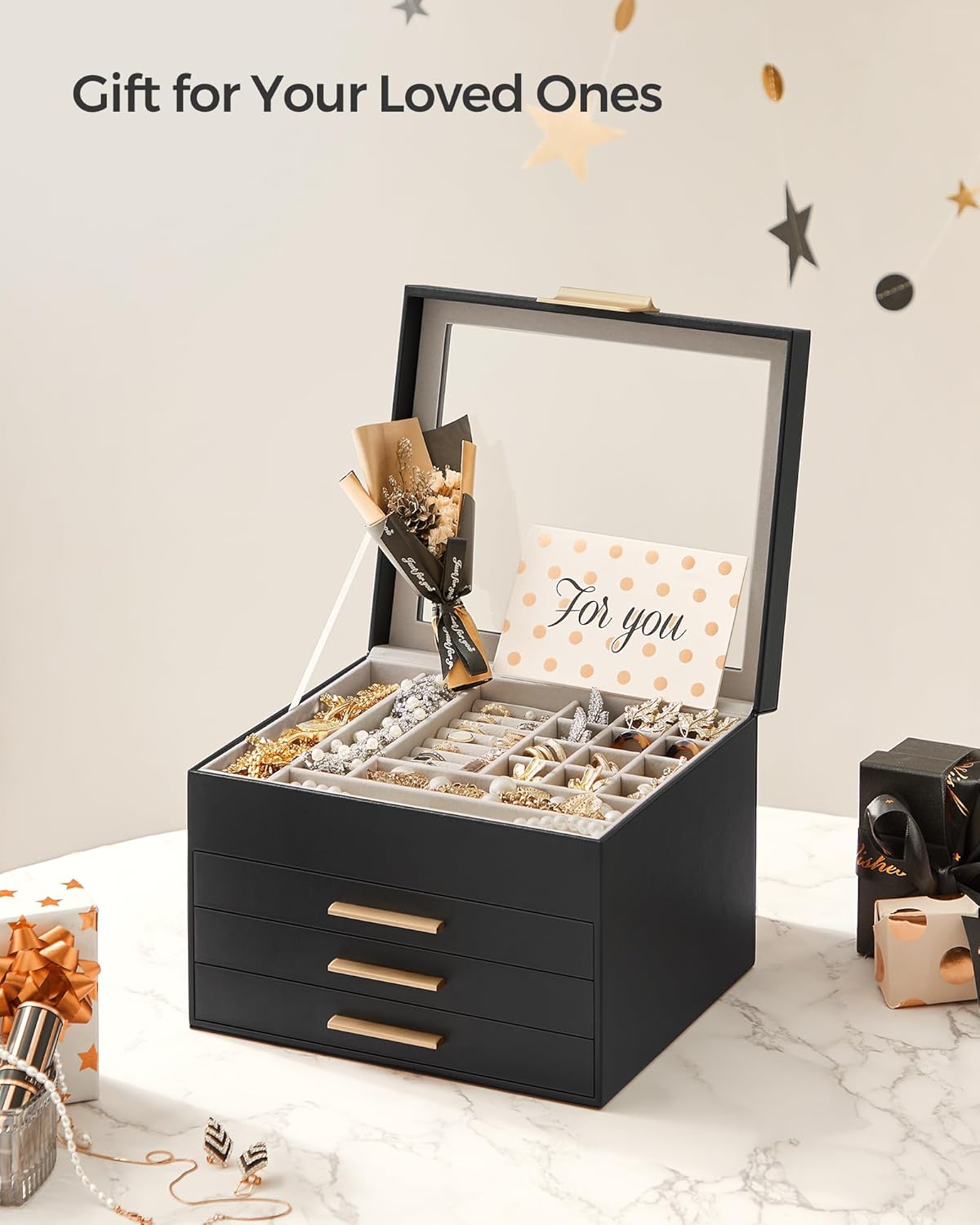 Perfect Gift Idea: Gift this original design jewelry box to your loved ones for their birthday or anniversary to surprise them! Or, treat yourself to this fancy jewelry box—you deserve it!