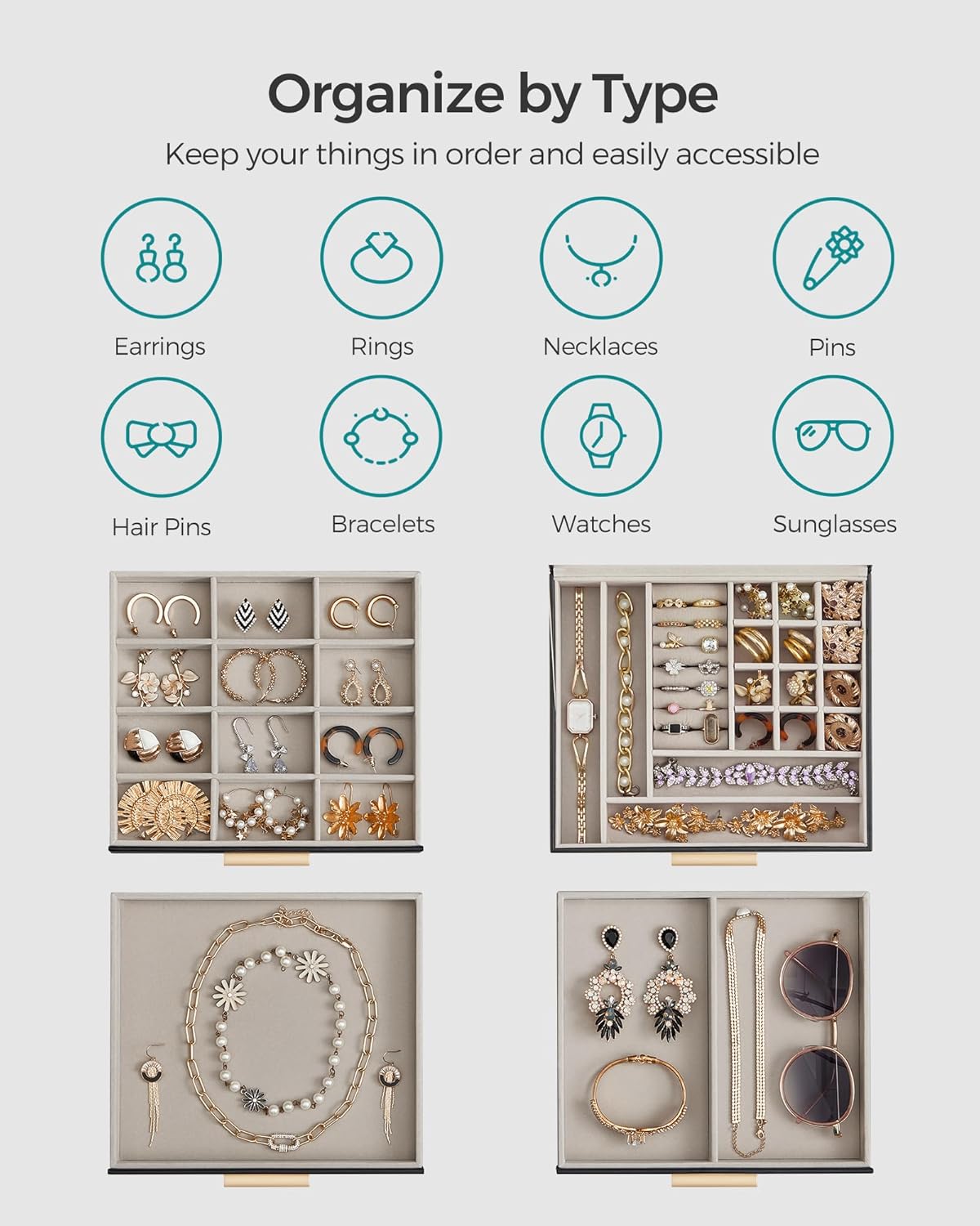 The SONGMICS jewelry storage series offers you a variety of chic, classic jewelry boxes to keep all your jewelry well protected and cared for. Your eyes will light up each time you open the jewelry box as if you’re opening up a treasure chest. Treat yourself to this chic SONGMICS jewelry box that speaks volumes about your self-love, confidence, and pursuit of quality life.