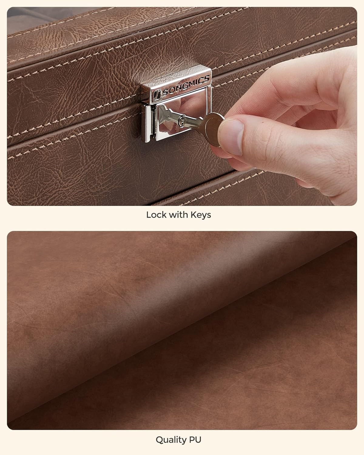 Excellent Workmanship: The watch box is lined with soft velvet to protect your beloved watches from scratches, crafted with quality PU for long-term service, and equipped with a sturdy metal lock for better protection