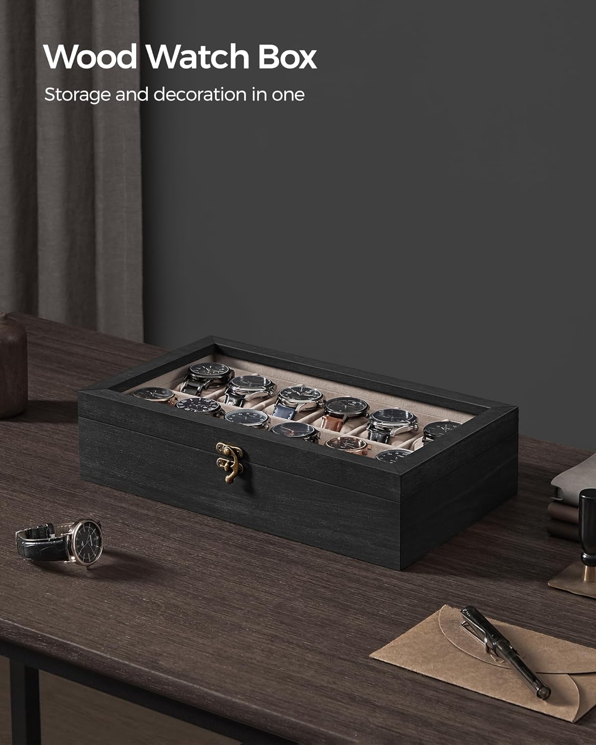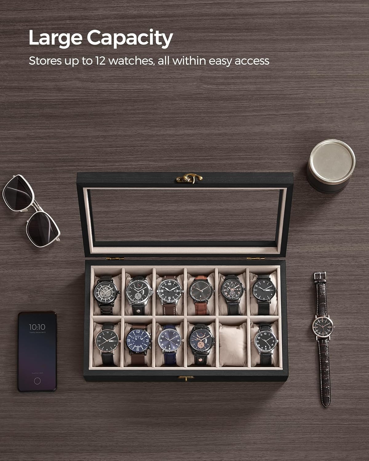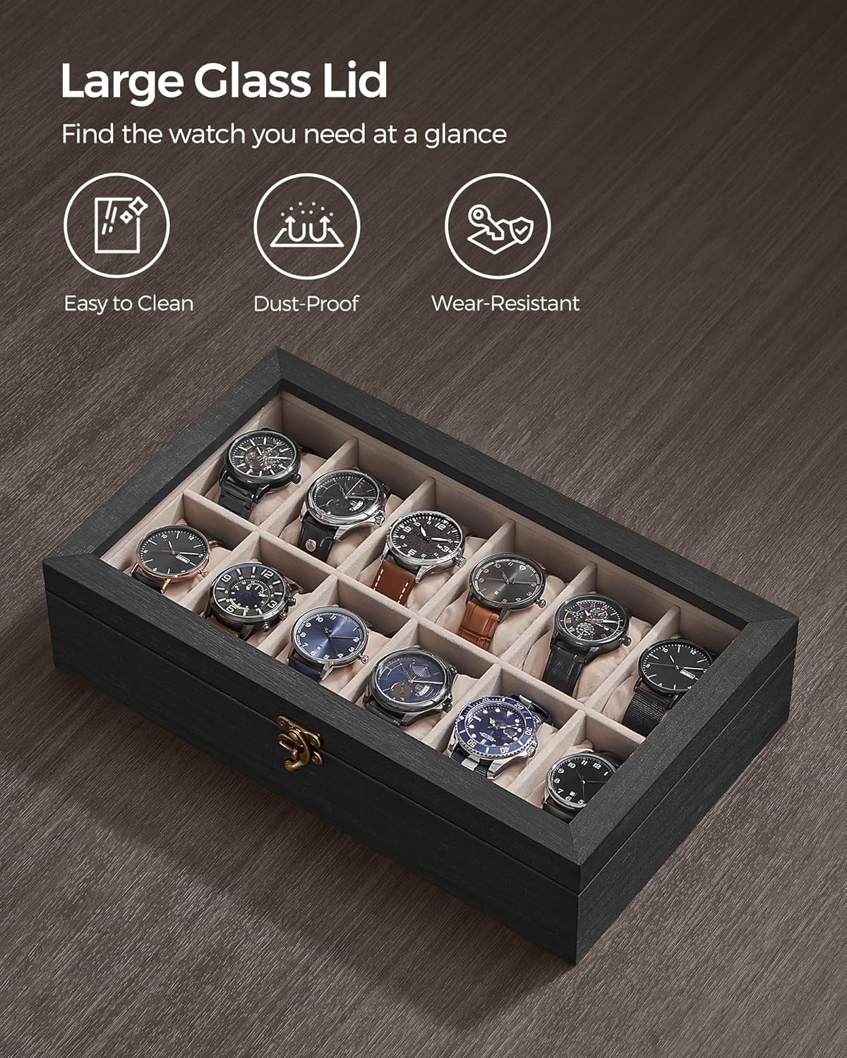 [Clear Glass Lid] Displaying your watches, keeping your watches clean from dust, helping you find your watches easier, or deciding on which watch to wear today without opening the lid—this glass lid ticks all the boxes