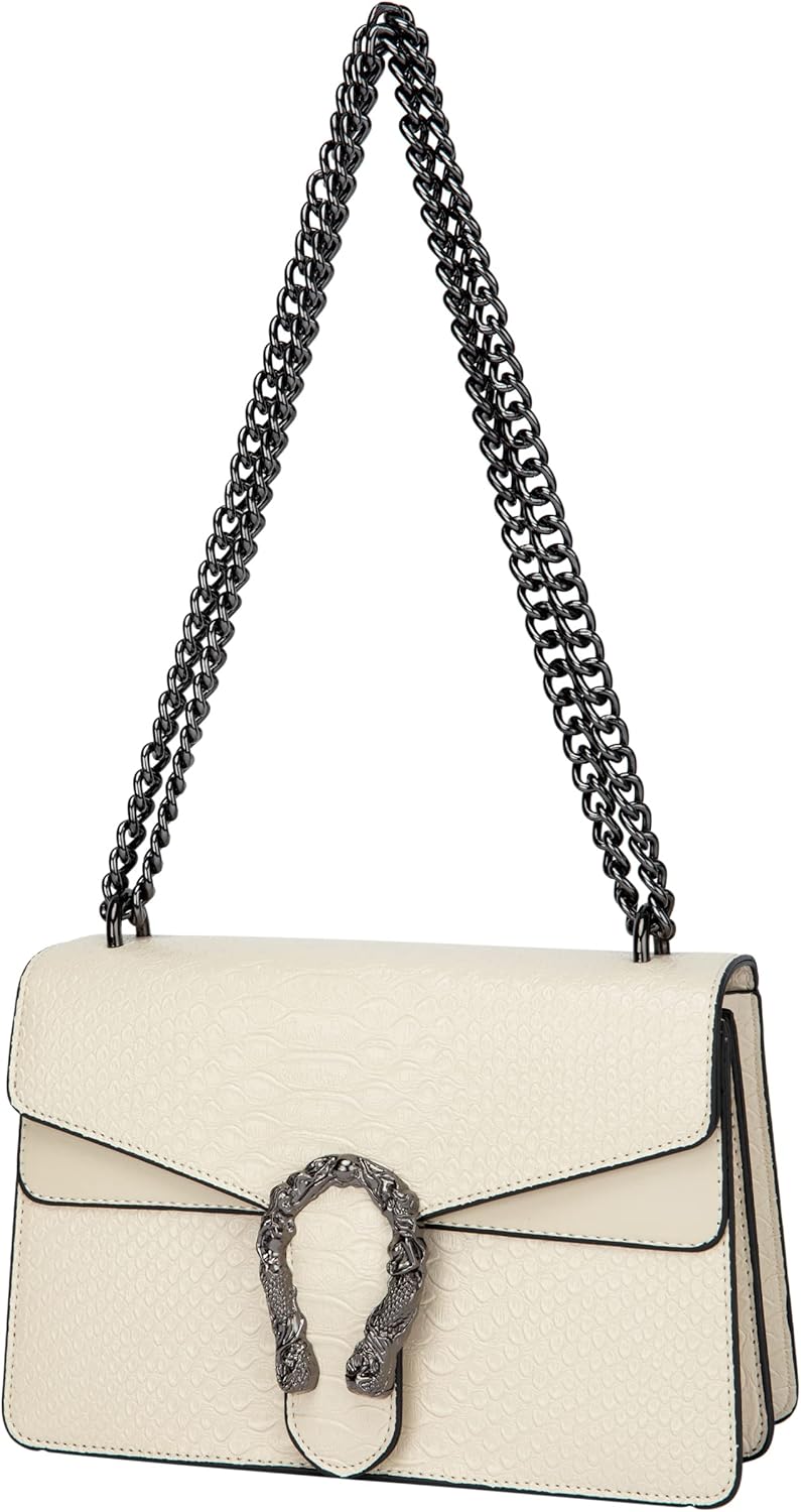 Stylish Chain Satchel Handbags for Women – Luxury Snakeskin Print Leather Shoulder Crossbody Bag Evening Clutch Tote Purse