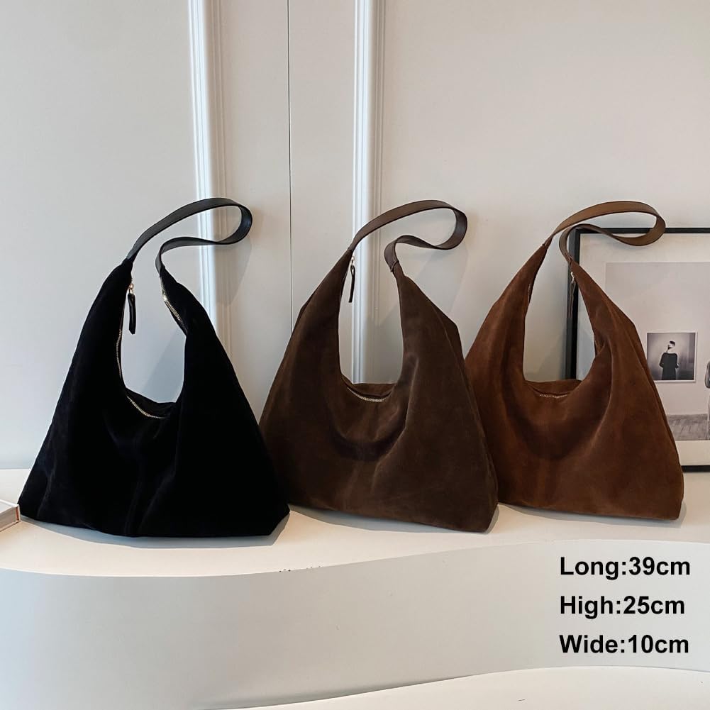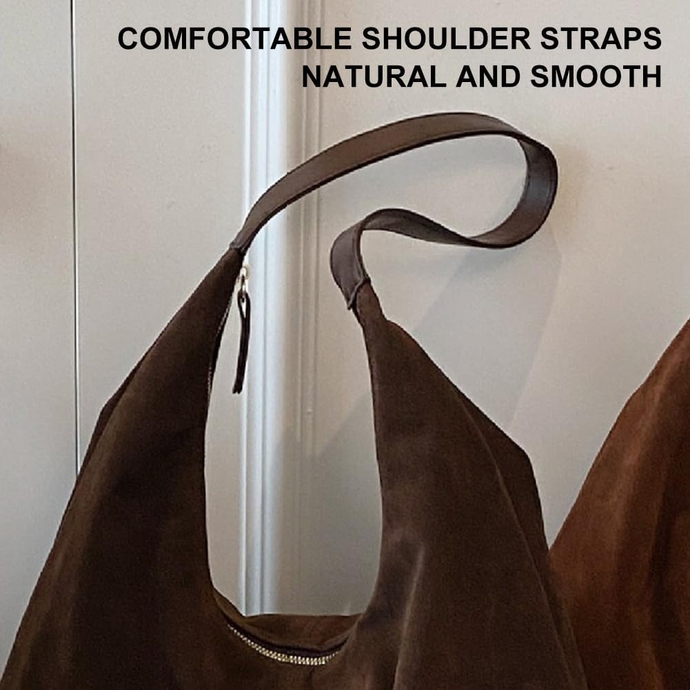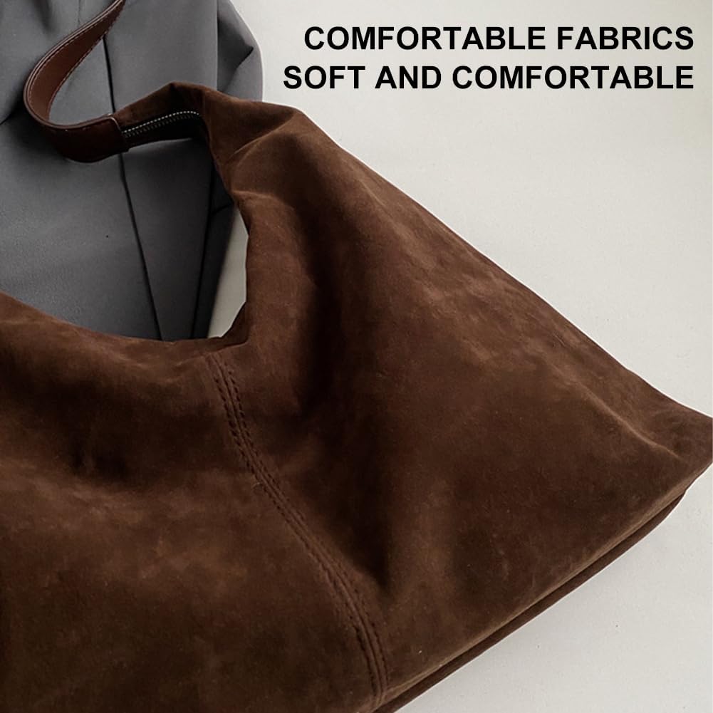 Suede Bag for Women, Suede Tote Bag Suede Crescent Shoulder Bag Brown Suede Hobo Bag Handbags Office Tote Work Bags