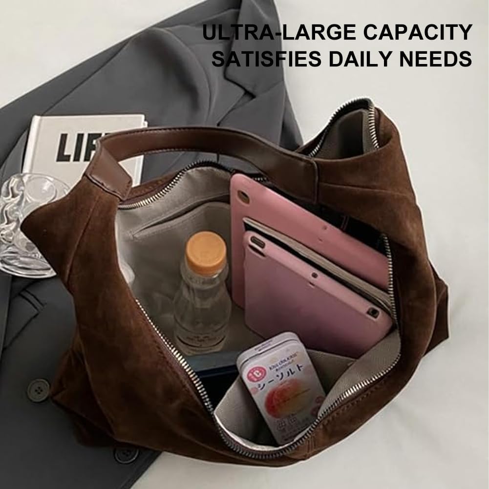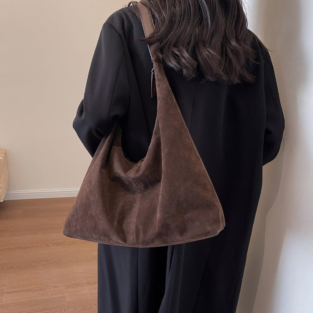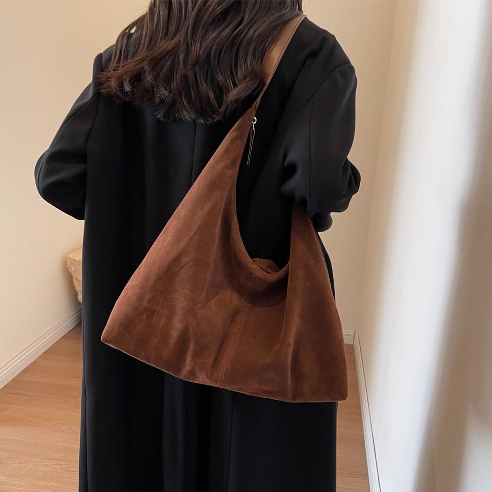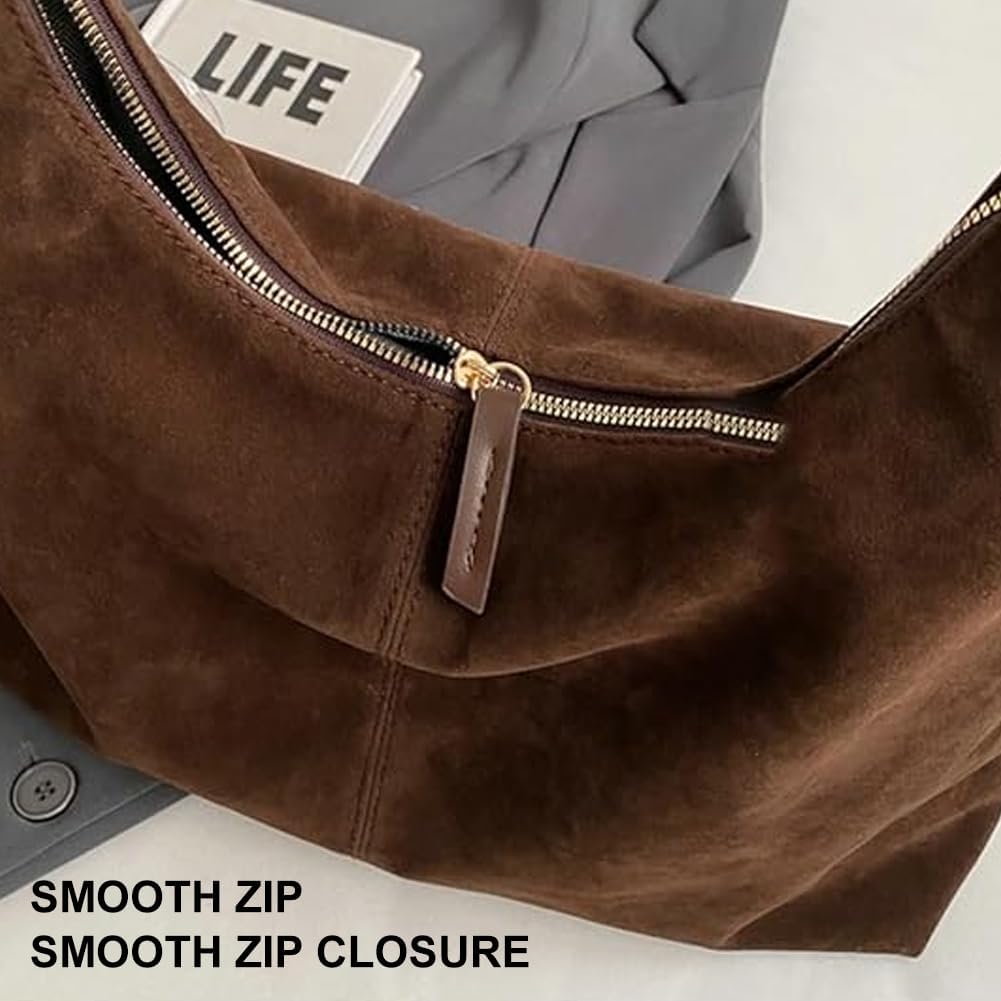 Suede Bag for Women, Suede Tote Bag Suede Crescent Shoulder Bag Brown Suede Hobo Bag Handbags Office Tote Work Bags