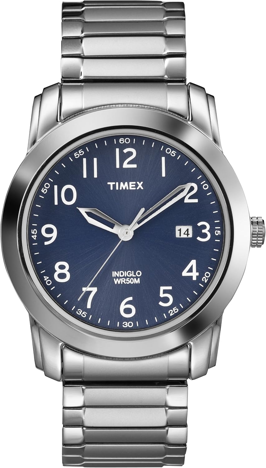 Timex Men’s T2P132AW Elevated Classics Blue Dial, Silver-Tone Expansion Band Watch