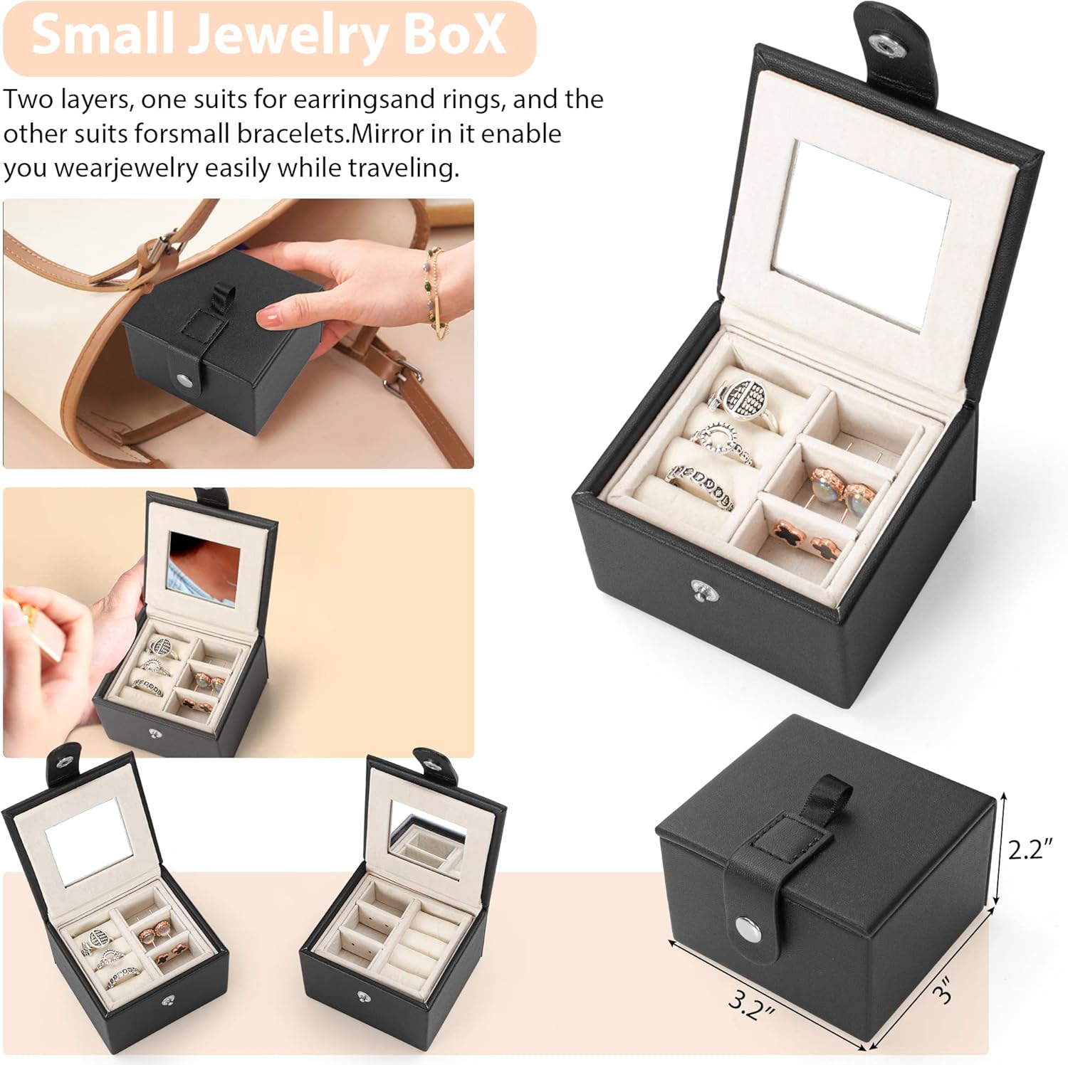 The included small jewelry box and travel jewelry box are very suitable for quickly packing your jewelry, and the mirror allows you to easily wear jewelry when traveling, and the concealed buckle design is very safe and beautiful