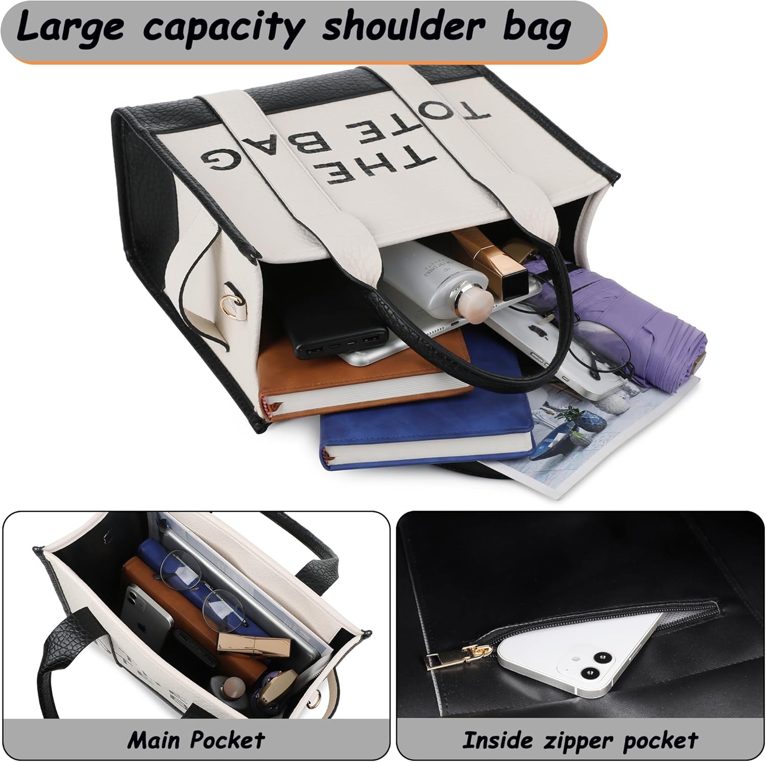 Tote Bags for Women Handbag Tote Purse with Zipper Canvas/PU Leather/Denim Crossbody Bag Shoulder Bag for Office, Travel