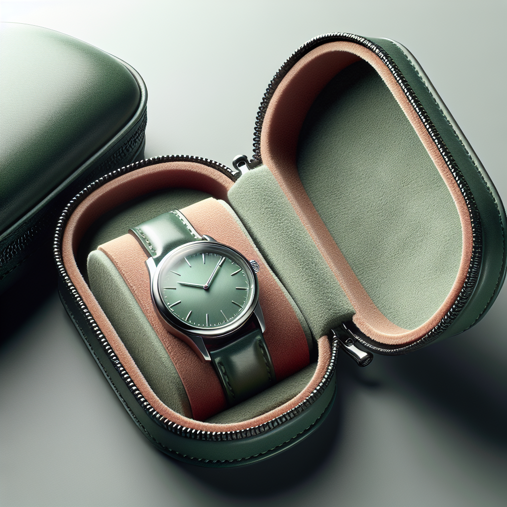 Travel Leather Watch Pouch/Watch Travel Case with Suede Lining/Luxury Leather Travel Watch Case Single Watch Pouch for Men and Women (Green)