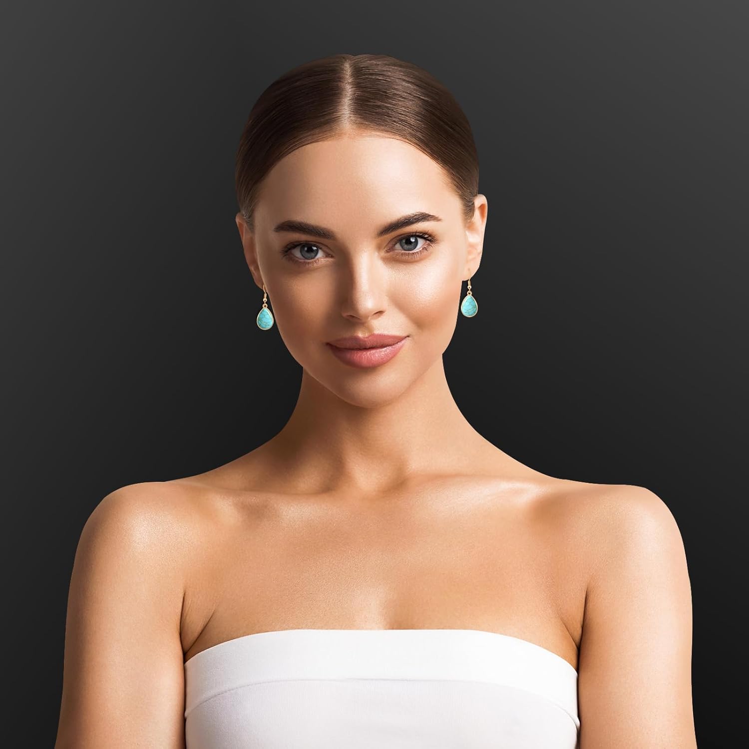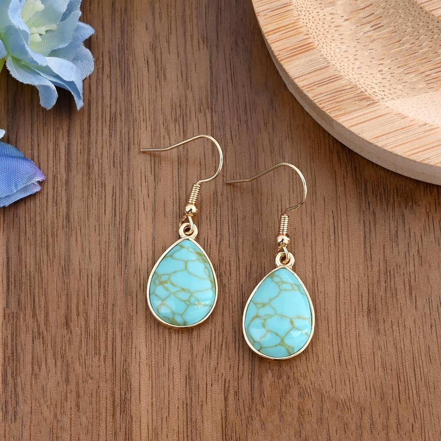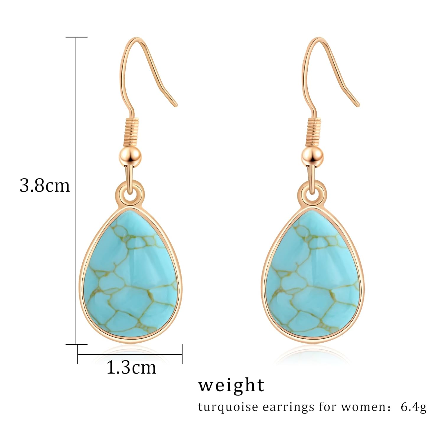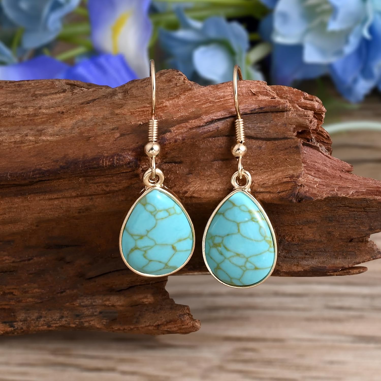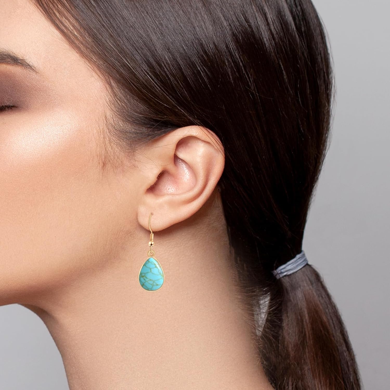 Turquoise Dangle Earrings for Women-14K Gold Plated Teardrop Earrings for Women Handmade Drop Gemstone Earrings Turquoise Jewelry for Women