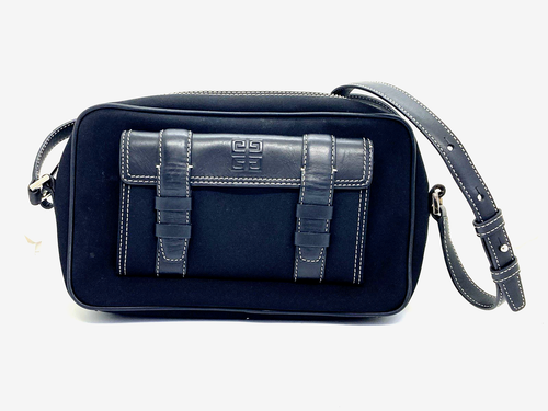 used GIVENCHY Pocket Shoulder Bag Canvas Black Logo Leather Women 27032