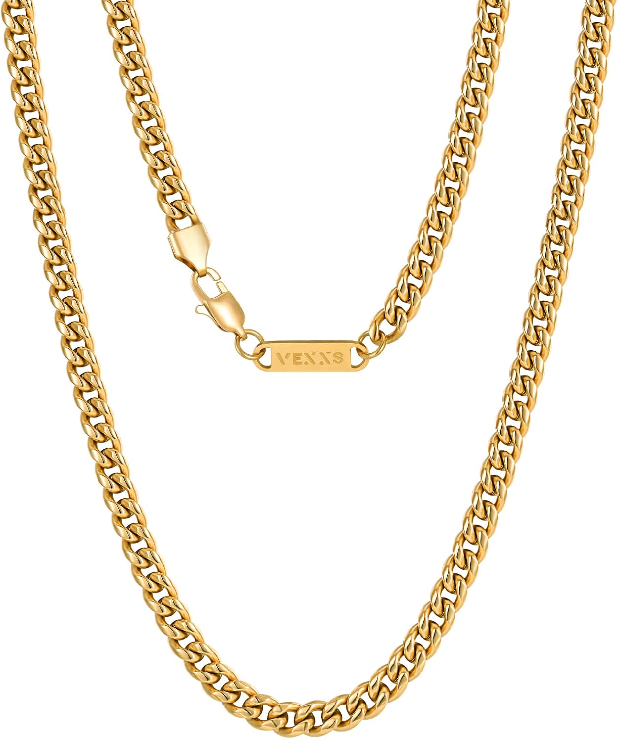 VEXXS Men’s Gold Chain, 18K Real Gold Plated Miami Cuban Link Chain, Durable No Color Fading 3mm 4mm 6mm Men’s Necklace Chain Urban Fashion Street Wear